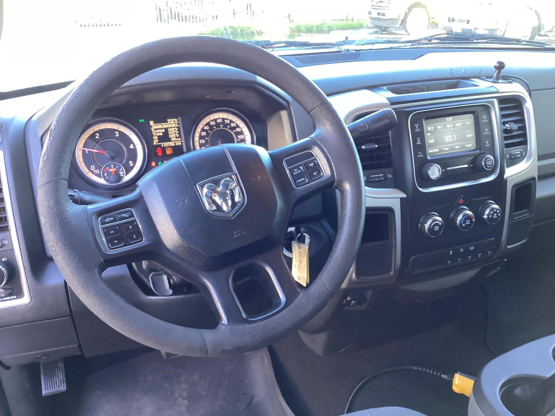RAM 5500 SLT Reg Cab w/ Cummins 6.7L I-6 OHV Direct Diesel Injection, 24 Valve Intercooled Turbo, 325HP @ 3,000 rpm, 750 lb-ft @ 1,600 rpm, 136 amp Alternator, 6 Speed Automatic Aisin AS68RC, Exhaust brake. Engine Block Heater, " CA, 4 Wheel Disc Brakes w/ Front and rear Vented Discs, Non-Independent Front Suspension, Rear Leaf Suspension, 4 Wheel Anti-Lock Braking System, Daytime Running Lights, Dual Air Bags, A/C, 5" Touch Screen AM/FM/CD Radio, Cruise Control, Power Windows, Power Door Locks, 40-20-40 Split Bench Seat, Vinyl Black Material, Upfitter Switches (5). 19,000 GVWR, Chrome Cab Steps, 22 Gal Fuel Tank, 225/70R19.5 Tires w/ 19.5 Alum Wheels
