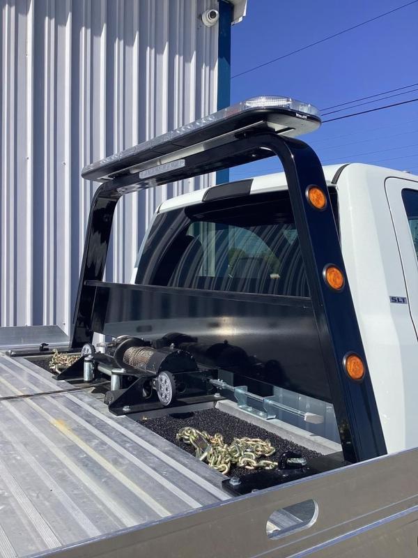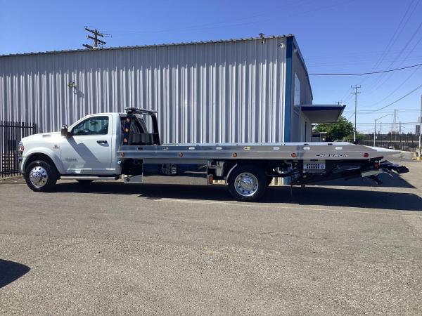 RAM 5500 SLT Reg Cab w/ Cummins 4x4 Package -6.7L I-6 OHV Direct Diesel Injection, 24 Valve Intercooled Turbo, 325HP @ 3,000 rpm, 750 lb-ft @ 1,600 rpm, 136 amp Alternator, 6 Speed Automatic Aisin AS68RC, Exhaust brake. Engine Block Heater, 120" CA, 4 Wheel Disc Brakes w/ Front and rear Vented Discs, Non-Independent Front Suspension, Rear Leaf Suspension, 4 Wheel Anti-Lock Braking System, Daytime Running Lights, Dual Air Bags, A/C, 5" Touch Screen AM/FM/CD Radio, Cruise Control, Power Windows, Power Door Locks, 40-20-40 Split Bench Seat, Vinyl Black Material, Upfitter Switches (5). 19,500 GVWR, Chrome Cab Steps, 22 Gal Fuel Tank, 225/70R19.5 Tires w/ 19.5 Alum Wheels.Chevron G-219.6" Aluminum Floor Rails (Aluminum) 4 Key Slot Package (Aluminum) 210" Full-Length Subframe Full-Length Slide Pads Right & Left Chain Trays Bed Anti-Tilt Lockout. Safety Chains (2-front, 2-rear) Positive Lock-down Painted with Black Acrylic Enamel (Subframe). Two Lift Cylinders Left & Right Side Illuminated Controls, One Extension Cylinder, Federal Standard #108 LED Lighting Winch Clutch Release 8,000 lb. Hydraulic Winch w/50' Cable Cable Tensioner Full Function Wheel Lift System Cable Roller Guide Slide-In L-Arms with Anti-Theft Storage Tow Light Socket. Pre-Wired Electrical Junction Box Mud Flaps Back-Up Lights & Alarm Hydraulic Pump. Adjustable Rear Stabilizer. LED Light package included. Body SERIAL# AL10C2E233910