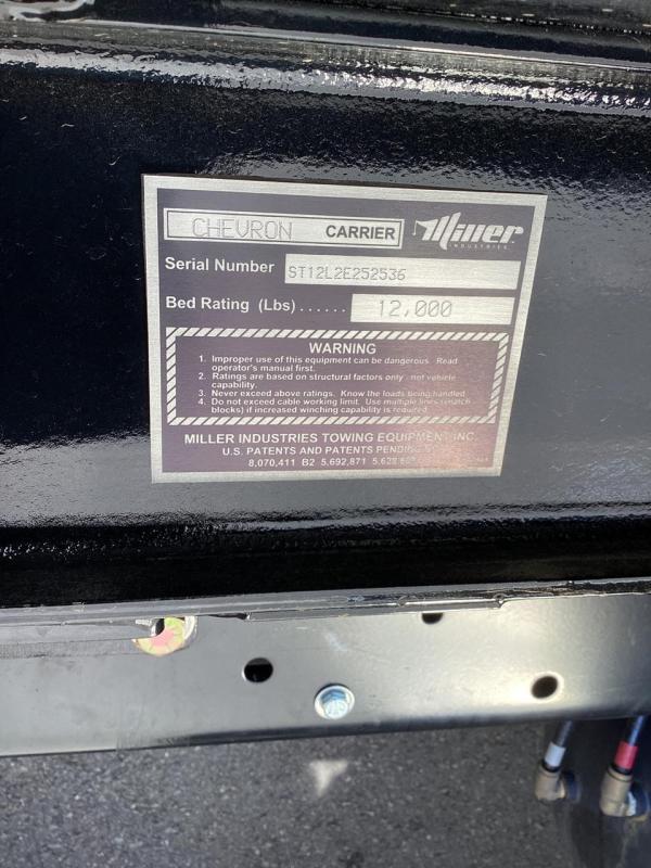 Chevron LCG 12 21.5' Steel LCG (Low Center of Gravity) Carrier w/ Wheel Lift, 3/16 Deck Plate, 2x2 Corten Tube Crossmembers on 8 inch Centers, (4) Rear Chain Locks, (2) Front Chain Locks, (6) Floor Plate Chain Locks (3 per side), 8K Ramsey winch, 3/8" x 50' Winch Cable, Illuminated Dual Controls, FMVSS 108 Lamp Group Shock Mounted Lighted, Direct Mount Pump, Cable Roller Guide w/ Tensioner, Winch Free Spool Extension, Back-Up Alarm, (2) Safety Chains, Mechanical Anti-tilt, Black Body Paint, 102" Wide Body, Inboard Tilt Cylinders, Floor Level Roll Formed w/ Punched Stake Pockets, 4,000lb Wheel Lift w/ Releasable L Arms, Fully Hydraulic Wheel Lift, (2) Safety Straps & Ratchets, (2) Rear Safety Chains, Body Lock w/ Nylatron roller Bearings, & 12,000lb Deck Load Rating, Body Serial # ST12L2E252536
