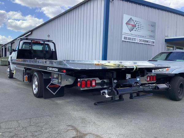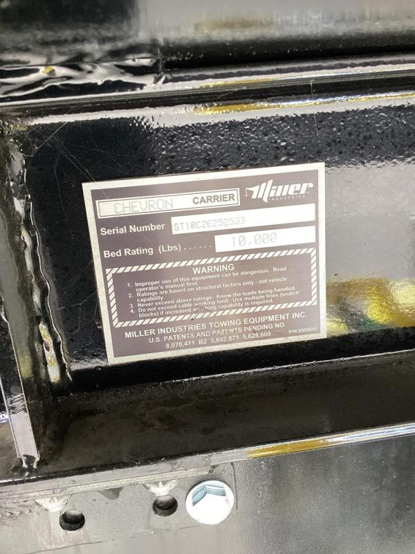 Chevron 21' Body Length steel carrier w/wheel lift w/ L-arms, full-length nyltron wear pads, (2) 3" lift cylinders, one extension cylinder, right and left chain trays, positive bed lock down system, 8,000# winch, winch roller guides, cable tensioner, left and right illuminated controls, back up lights, Federal standard 108 lighting, back up alarm, wheel lift safety pin, safety chains, 3000 psi operating system, 1080 square inches of slide pad, full length sub frame. LED Body lights. Body Serial # ST10C2E252534