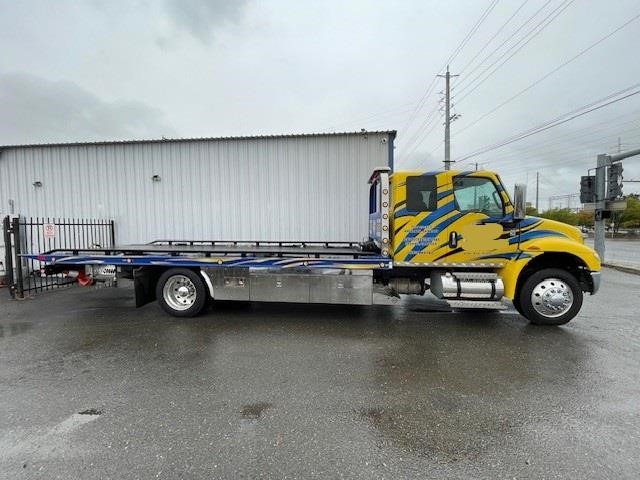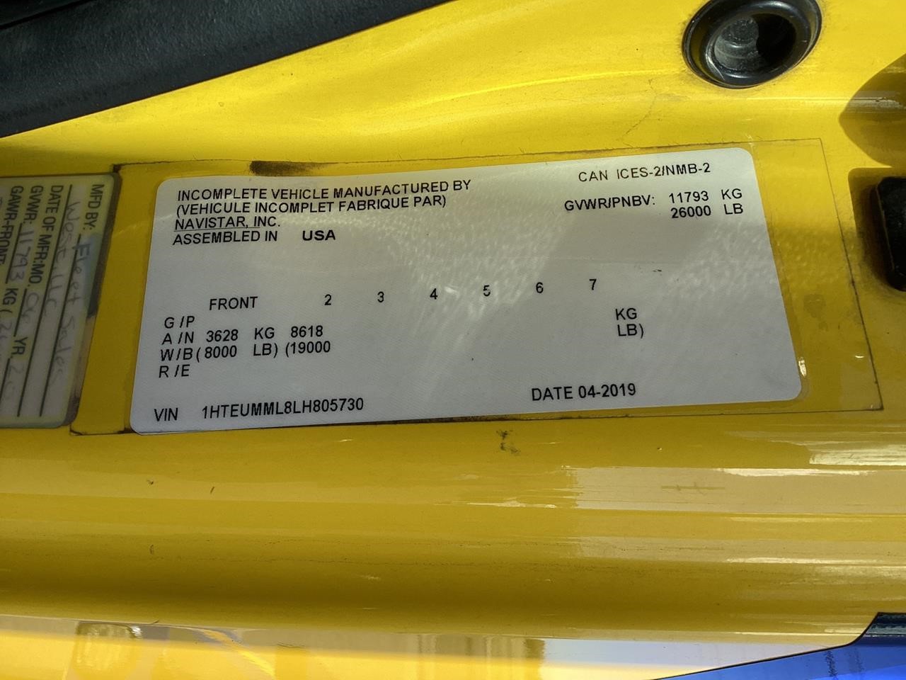 IInternational Model MV Extra Cab. 6.7L Cummins, 260HP, 660lbs-ft, Allison RDS-2200 6 Speed Automatic. Air brake package. Air Dryer with Heater. 20,000lb , Air Ride suspension with Dump valve., 144" CA, Exhaust Brake,, AM/FM/Bluetooth, 4 speakers, Factory Switches, Power Windows & Door Locks, Chrome Bumper & Grille, 255/70R22.5 Tires w/ 22.5 Alum Wheels, Visor, Power Mirrors, Heated, ,8,000lb front axle. 19,000lb Rear axle.7 gallon DEF tank. 40 gallon & 50 gallon fuel tanks, Air cab mounts. Air ride driver , and passenger seats, Rear bench seat, 26,000lb GVWR