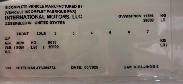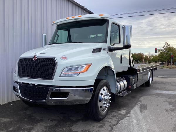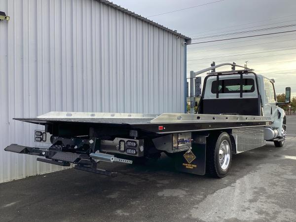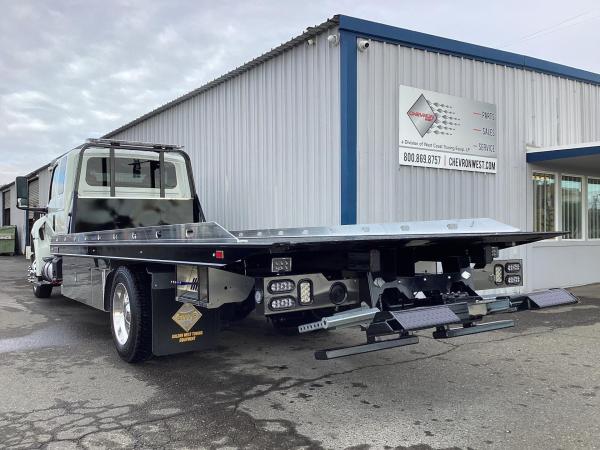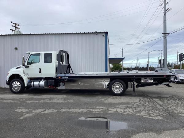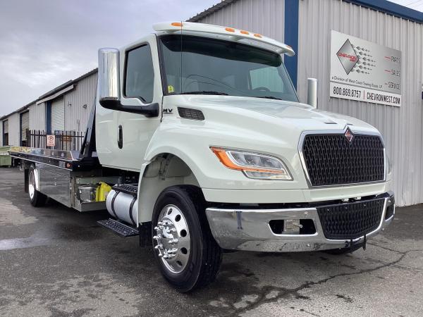 International Model MV Extended cab. Cummins ISB 6.7L, 260HP @ 2,300 rpm, 660 lb-ft @ 1,600 rpm, Allison RDS-2200 6 Speed Auto, Air Brakes, Air Dryer Heater, Exhaust Brake, Front Axle: Dana-Spicer I-Beam 8,000lb w/ Shock Absorbers, Rear Axle: Dana-Spicer 19,000lb rear differential lock. , 20,000lb Air Ride Suspension, 4.88 Rear Axle Ratio, Chrome Bumper, black Grille, Air Ride Driver Seat,& Passenger Seat, rear bench seat. Idle Up, Cruise Control, Tilt-Wheel, AM/FM/CD/MP3 w/ Bluetooth, Air Horn, Engine Block Heater, Dual 40-50 Gal Alum Fuel Tanks, 7 Gal DEF Tank, Power Windows, Power Door Locks, Power heated Mirrors. A/C, 255/70R22.5 Tires w/ 22.5 Alum Wheels, Cup holders.Visor 25,500 GVWR,Century Steel LCG (Low Center of Gravity) Carrier w/ Wheel Lift, 3/16 Deck Plate, 3x2 Corten Tube Crossmembers on 8 inch Centers, (4) Rear Chain Locks, (2) Front Chain Locks, (6) Floor Plate Chain Locks (3 per side), 8,000lb Worm Gear Winch, 3/8" x 50' Winch Cable, Illuminated Dual Controls, FMVSS 108 Lamp Group Shock Mounted Lighted, Direct Mount Pump, Cable Roller Guide w/ Tensioner, Winch Free Spool Extension, Back-Up Alarm, (2) Safety Chains, Mechanical Anti-tilt, Black Body Paint, 102" Wide Body, Inboard Tilt Cylinders, Floor Level Roll Formed w/ Punched Stake Pockets, 4,000lb Wheel Lift w/ Releasable L Arms, Fully Hydraulic Wheel Lift, (2) Safety Straps & Ratchets, (2) Rear Safety Chains, Body Lock w/ Nylatron Toller Bearings, & 12,000lb Deck Load Rating. Body SN# ST12L2E252360
