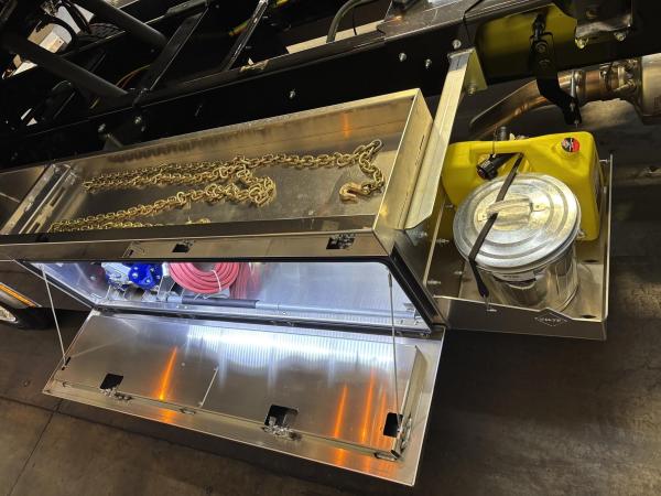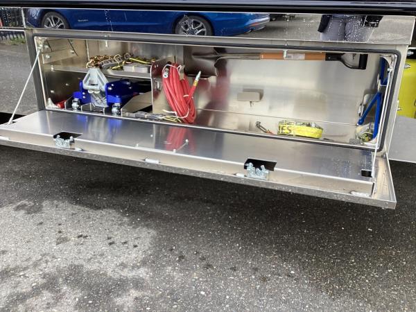 TB: Toolbox, Aluminum, 69", Passenger-Side, SS Doors, Integrated Top Tray, Equipment Brackets
