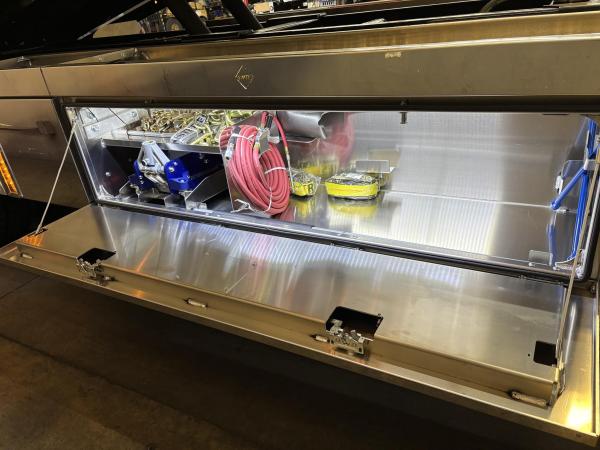 TB: Toolbox, Aluminum, 69", Driver-Side, SS Door, Integrated Top Tray, Equipment Brackets