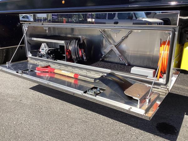 Chevron 21' Body Length steel carrier w/wheel lift w/ L-arms, full-length nyltron wear pads, (2) 3" lift cylinders, one extension cylinder, right and left chain trays, positive bed lock down system, 8,000# winch, winch roller guides, cable tensioner, left and right illuminated controls, back up lights, Federal standard 108 lighting, back up alarm, wheel lift safety pin, safety chains, 3000 psi operating system, 1080 square inches of slide pad, full length sub frame. LED Body lights. Body Serial # ST10C2E252533
