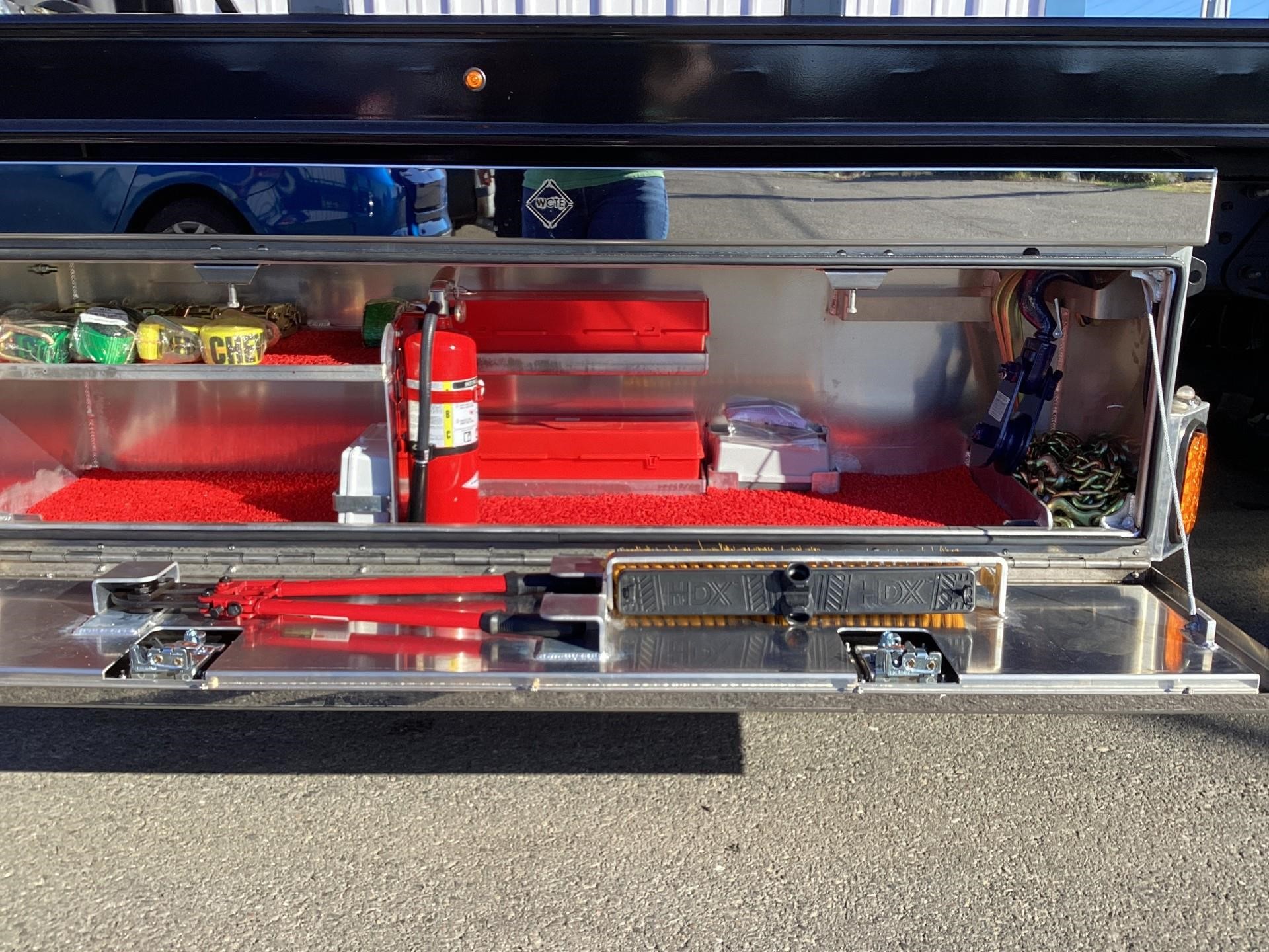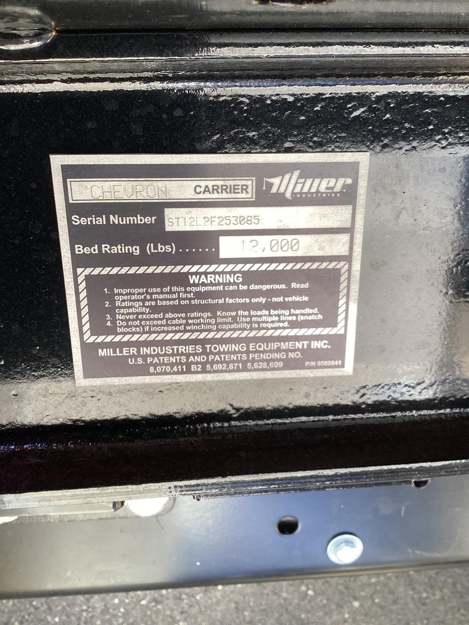 Chevron LCG 12 21.5' Steel LCG (Low Center of Gravity) Carrier w/ Wheel Lift, 3/16 Deck Plate, 2x2 Corten Tube Crossmembers on 8 inch Centers, (4) Rear Chain Locks, (2) Front Chain Locks, (6) Floor Plate Chain Locks (3 per side), 8K Ramsey winch, 3/8" x 50' Winch Cable, Illuminated Dual Controls, FMVSS 108 Lamp Group Shock Mounted Lighted, Direct Mount Pump, Cable Roller Guide w/ Tensioner, Winch Free Spool Extension, Back-Up Alarm, (2) Safety Chains, Mechanical Anti-tilt, Black Body Paint, 102" Wide Body, Inboard Tilt Cylinders, Floor Level Roll Formed w/ Punched Stake Pockets, 4,000lb Wheel Lift w/ Releasable L Arms, Fully Hydraulic Wheel Lift, (2) Safety Straps & Ratchets, (2) Rear Safety Chains, Body Lock w/ Nylatron roller Bearings, & 12,000lb Deck Load Rating, Body Serial # ST12L2F253085