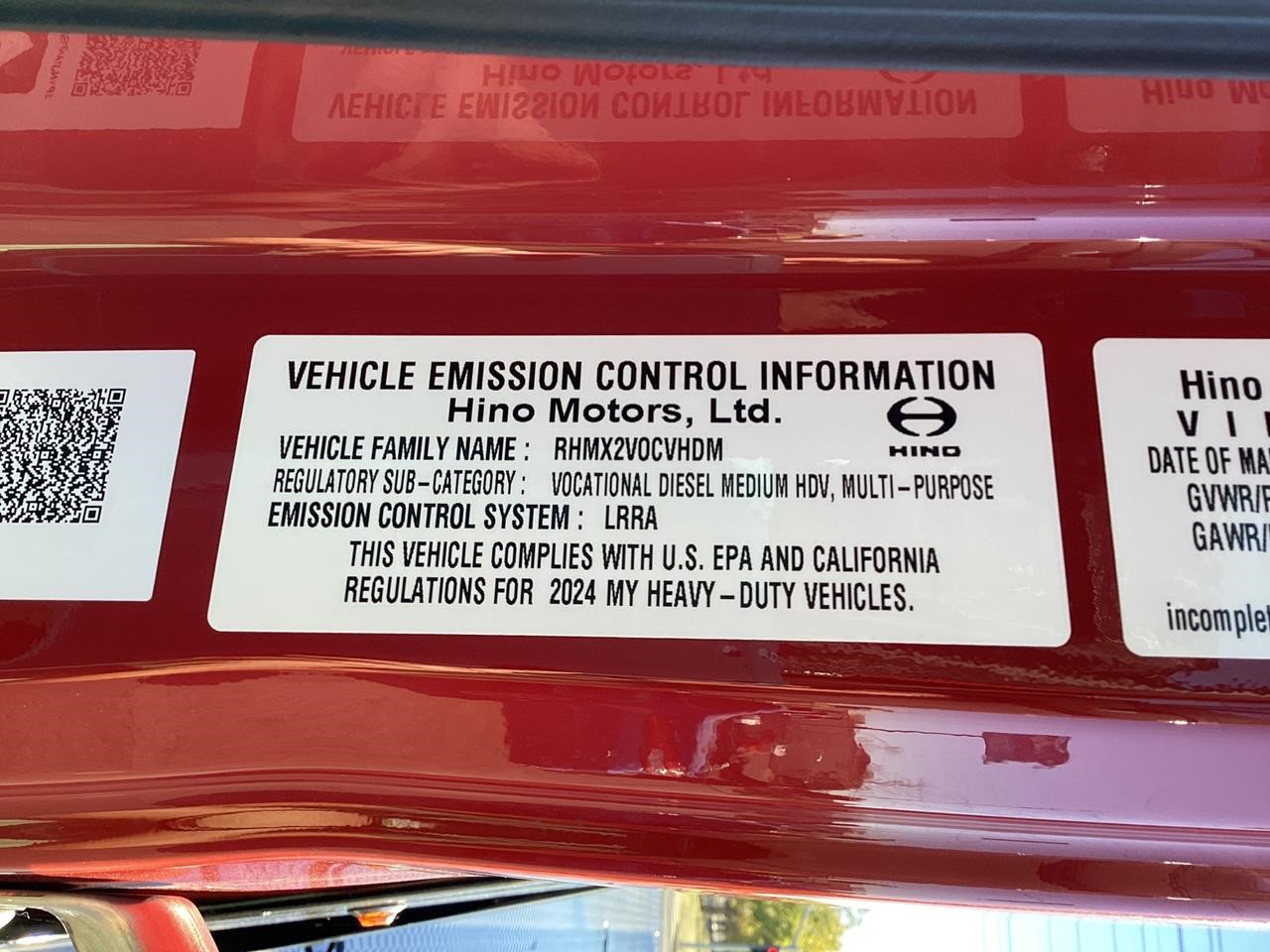 2025 Hino L-6 California Compliant - 260 HP Auto. Allison Automatic. Exhaust Brake, Air Brake package. 10,000lb front Axle 12K Front Suspension. 19,000lb Rear Axle, 4.88 Ratio. 52 52-gallon aluminum tank. 19,000lb Air suspension. Power Group, AM/FM Bluetooth, air-ride driver's seat. Two-man passenger seat. cruise control, Idle up, chrome bumper -Aluminum wheels, Power Mirrors. Tilt wheel.. WB 22.5 25570R Tires. GVWR 25,950 149” CA ---- 5-year 300K Engine and After-treatment. 7-year unlimited -Allison Warranty