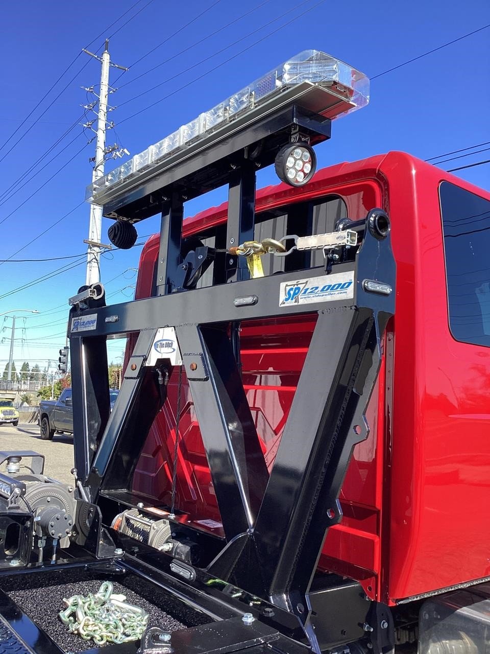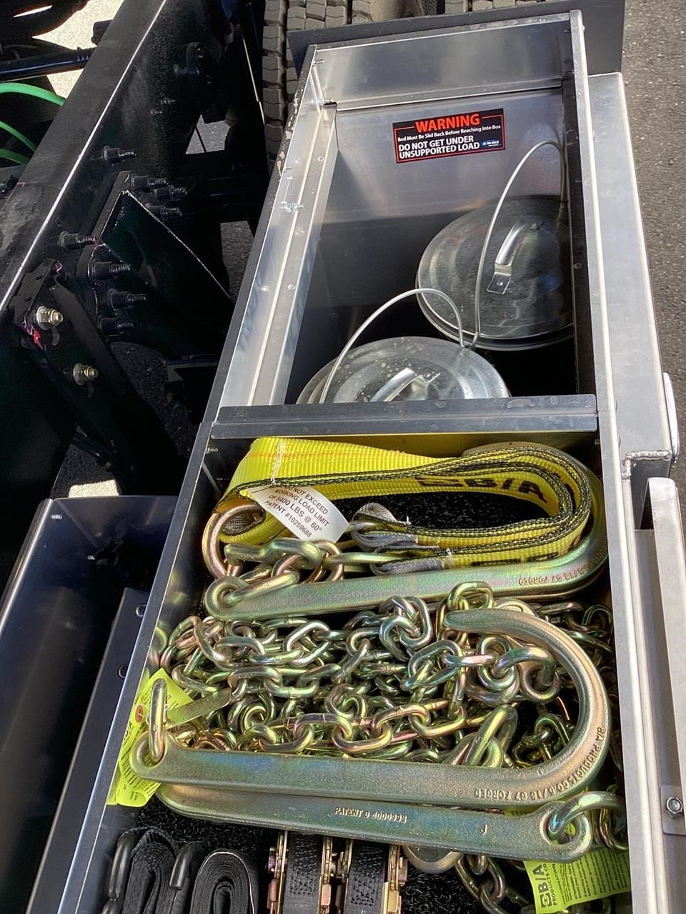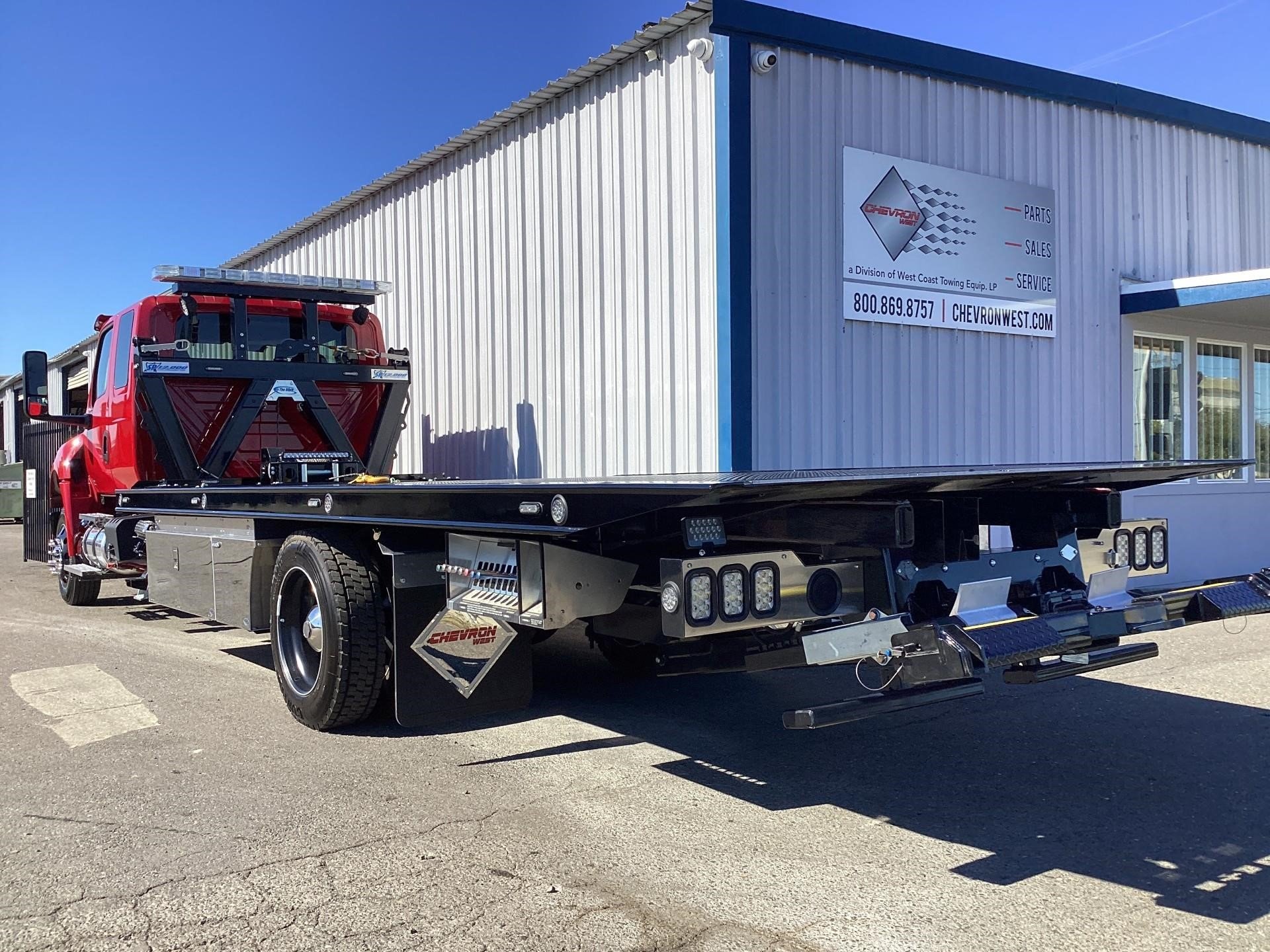Chevron Steel LCG 16,000lb (Low Center of Gravity) Carrier w/ Wheel Lift, 3/16 Deck Plate, 3x2 Corten Tube Crossmembers on 8 inch Centers, (4) Rear Chain Locks, (2) Front Chain Locks, (6) Floor Plate Chain Locks (3 per side), 8,000lb Worm Gear Winch, 3/8" x 50' Winch Cable, Illuminated Dual Controls, FMVSS 108 Lamp Group Shock Mounted Lighted, Direct Mount Pump, Cable Roller Guide w/ Tensioner, Winch Free Spool Extension, Back-Up Alarm, (2) Safety Chains, Mechanical Anti-tilt, Black Body Paint, 102" Wide Body, Inboard Tilt Cylinders, Floor Level Roll Formed w/ Punched Stake Pockets, 4,000lb Wheel Lift w/ Releasable L Arms, Fully Hydraulic Wheel Lift, (2) Safety Straps & Ratchets, (2) Rear Safety Chains, Body Lock w/ Nylatron Toller Bearings, & 12,000lb Deck Load Rating. Body SN# ST16L2G224350