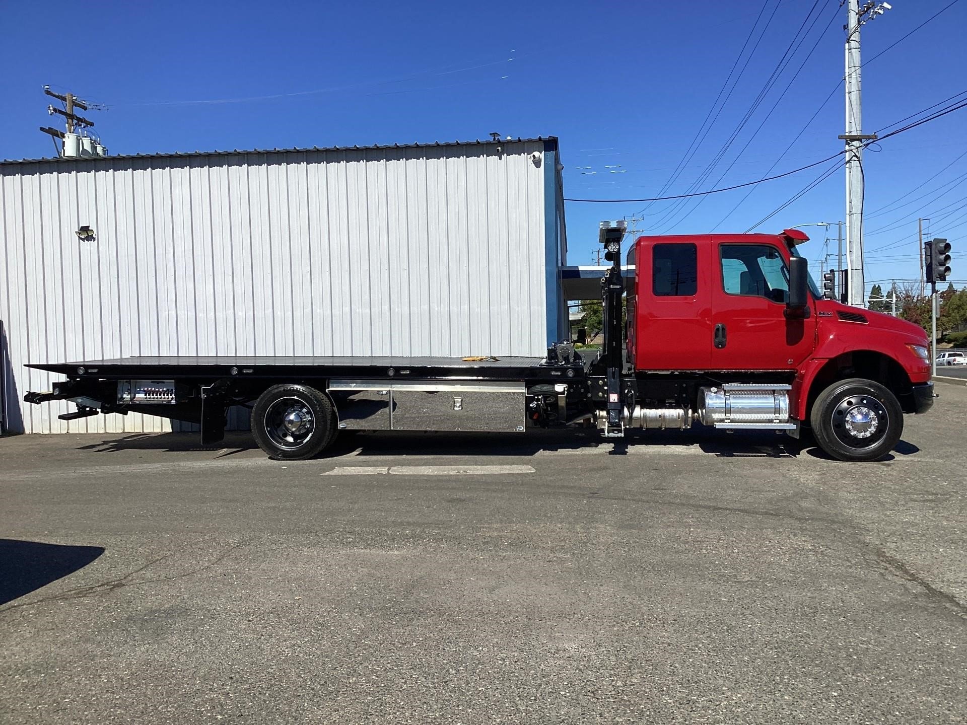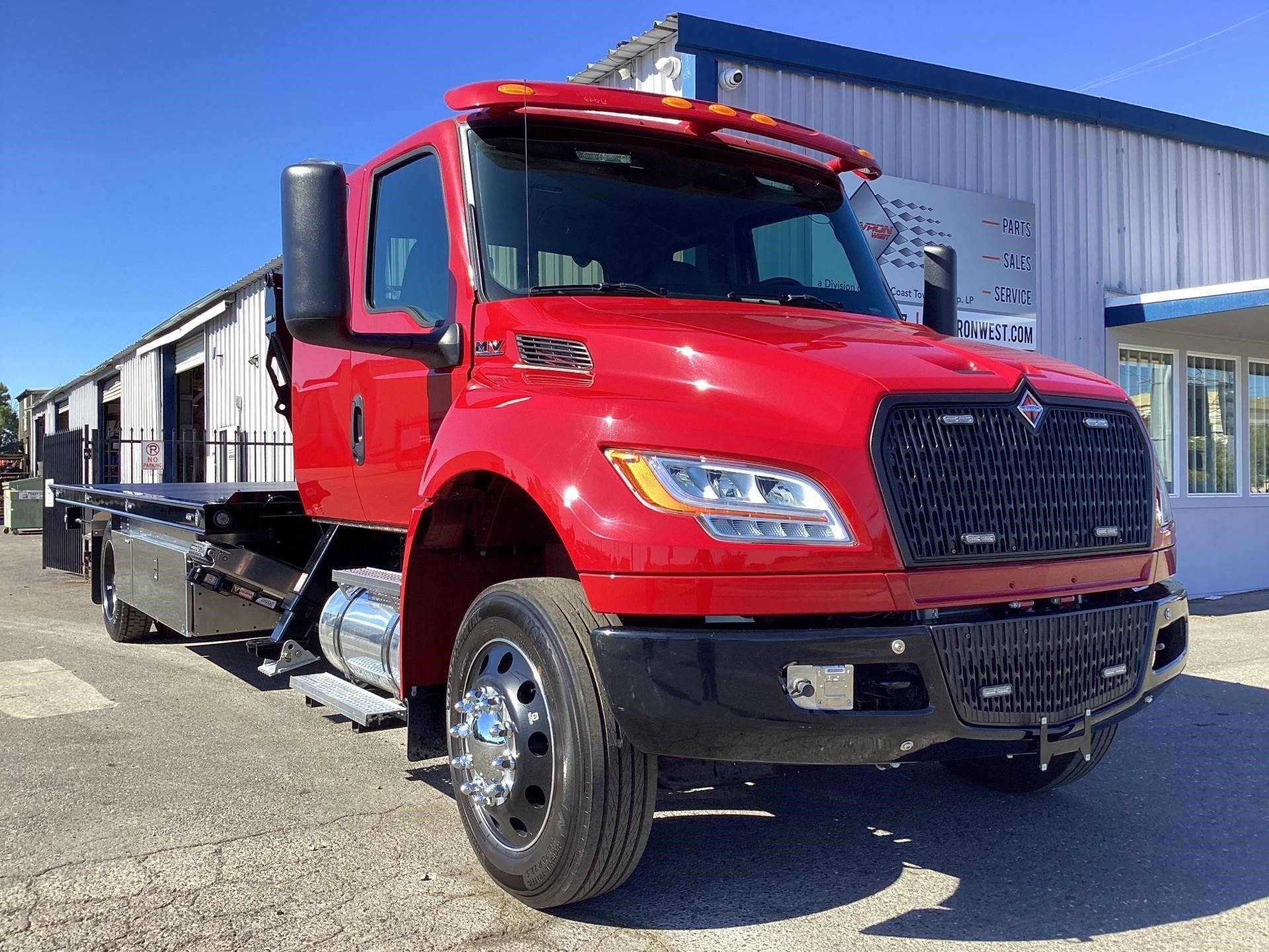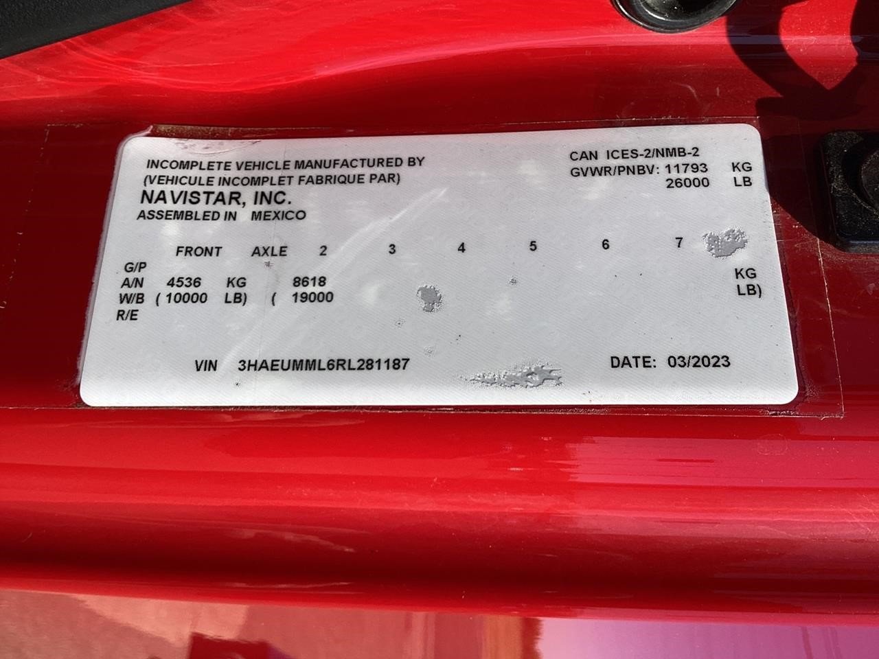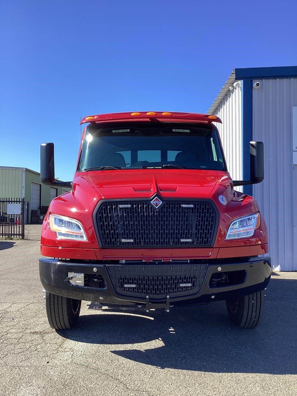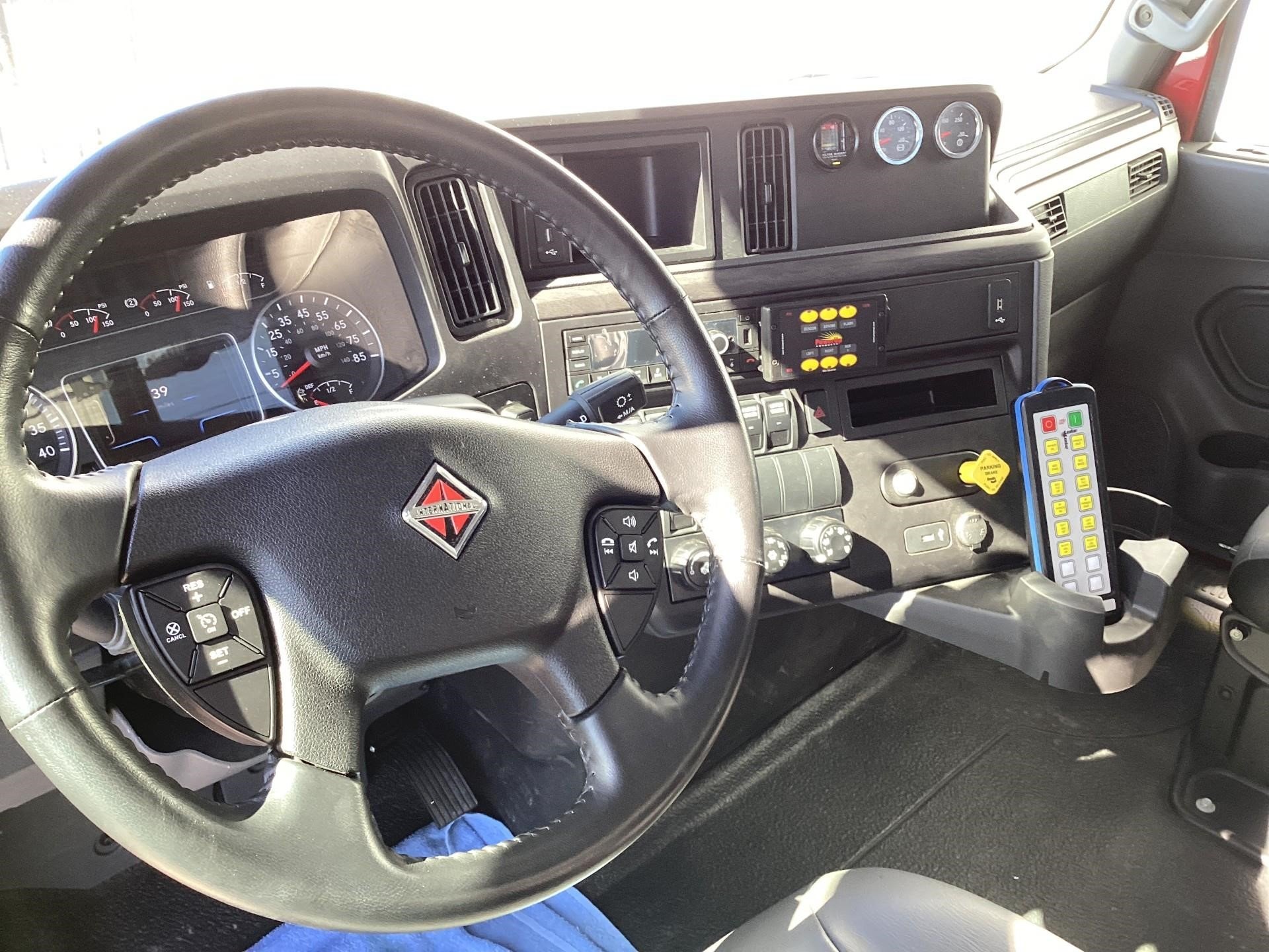 International Model MV Extended cab. Cummins ISB 6.7L, 325HP @ 2,300 rpm, 750 lb-ft @ 1,600 rpm, Allison RDS-3000 6 Speed Auto, Air Brakes, Air Dryer Heater, Exhaust Brake, Front Axle: Dana-Spicer I-Beam 10,000lb w/ Shock Absorbers, Rear Axle: Dana-Spicer 19,000lb rear axle.. , 21,000lb Air Ride Suspension, with gauge, 4.88 Rear Axle Ratio, Chrome Bumper, black Grille, Air Ride Driver Seat,& Passenger Seat, rear bench seat. Idle Up, Cruise Control, Tilt-Wheel, AM/FM/CD/MP3 w/ Bluetooth, Air Horn, Engine Block Heater, Dual 40-50 Gal Alum Fuel Tanks, 7 Gal DEF Tank, Power Windows, Power Door Locks, Power heated Mirrors. A/C, 255/70R22.5 Tires w/ 22.5 Alum Wheels, Cup holders.Visor 25,500 GVWR,