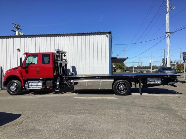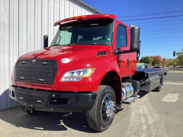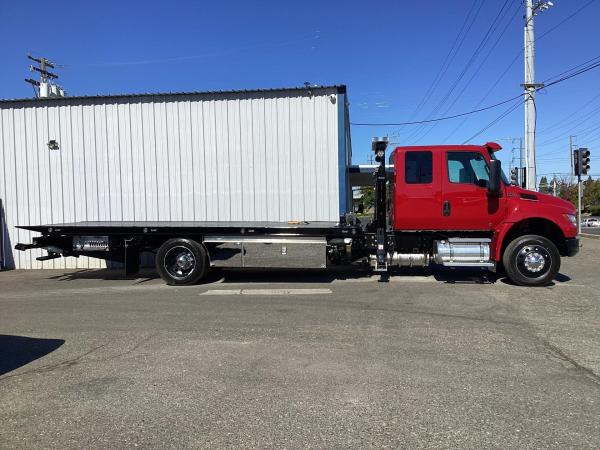International Model MV Extended cab. Cummins ISB 6.7L, 325HP @ 2,300 rpm, 750 lb-ft @ 1,600 rpm, Allison RDS-3000 6 Speed Auto, Air Brakes, Air Dryer Heater, Exhaust Brake, Front Axle: Dana-Spicer I-Beam 10,000lb w/ Shock Absorbers, Rear Axle: Dana-Spicer 19,000lb rear axle.. , 21,000lb Air Ride Suspension, with gauge, 4.88 Rear Axle Ratio, Chrome Bumper, black Grille, Air Ride Driver Seat,& Passenger Seat, rear bench seat. Idle Up, Cruise Control, Tilt-Wheel, AM/FM/CD/MP3 w/ Bluetooth, Air Horn, Engine Block Heater, Dual 40-50 Gal Alum Fuel Tanks, 7 Gal DEF Tank, Power Windows, Power Door Locks, Power heated Mirrors. A/C, 255/70R22.5 Tires w/ 22.5 Alum Wheels, Cup holders.Visor 25,500 GVWR,Extended Warranties.- Engine Warranty: 5 yr / 300k miles PPI & after treatment. -- Special order options on chassis- Wing, Dash, 156" CA Keyless Entry, Alcoa DURA Black. Air Ride Driver & Passenger seat. Black Grille, Black Bumper,