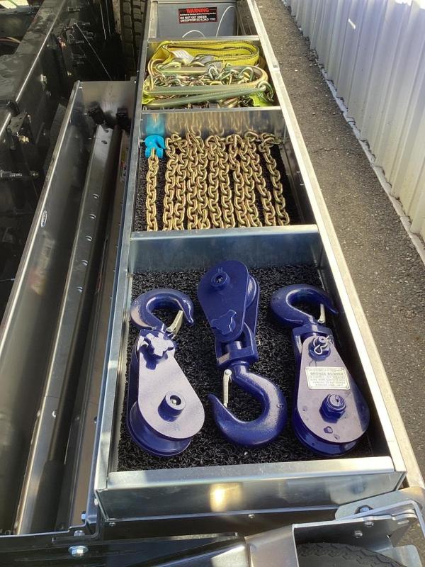Chevron Steel LCG 16,000lb (Low Center of Gravity) Carrier w/ Wheel Lift, 3/16 Deck Plate, 3x2 Corten Tube Crossmembers on 8 inch Centers, (4) Rear Chain Locks, (2) Front Chain Locks, (6) Floor Plate Chain Locks (3 per side), 8,000lb Worm Gear Winch, 3/8" x 50' Winch Cable, Illuminated Dual Controls, FMVSS 108 Lamp Group Shock Mounted Lighted, Direct Mount Pump, Cable Roller Guide w/ Tensioner, Winch Free Spool Extension, Back-Up Alarm, (2) Safety Chains, Mechanical Anti-tilt, Black Body Paint, 102" Wide Body, Inboard Tilt Cylinders, Floor Level Roll Formed w/ Punched Stake Pockets, 4,000lb Wheel Lift w/ Releasable L Arms, Fully Hydraulic Wheel Lift, (2) Safety Straps & Ratchets, (2) Rear Safety Chains, Body Lock w/ Nylatron Toller Bearings, & 12,000lb Deck Load Rating. Body SN# ST16L2G224350