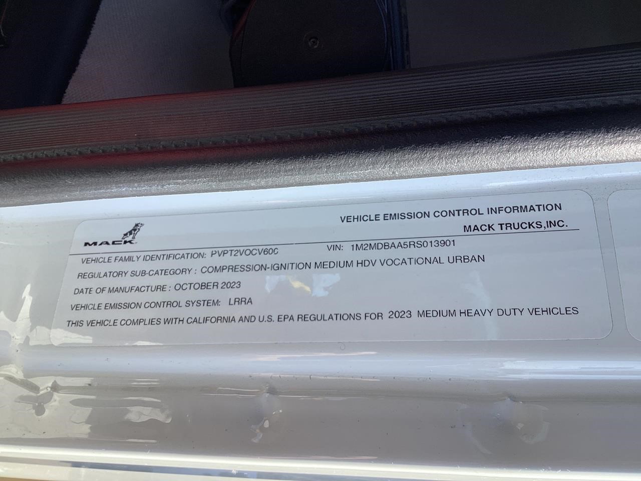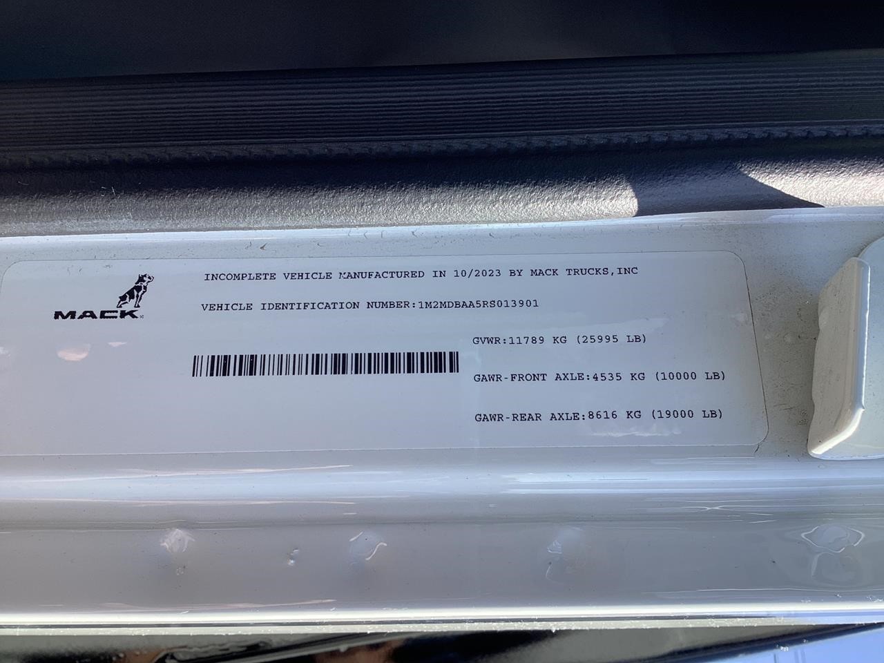 2024 Mack MD6 w/ Cumins 6.7L, 260HP, 660 lb-ft, Allison RDS 2500 6 Speed Auto w/ PTO Provisions, Auto Neutral Shift Selector, Engine Brake, Cruise Control, 10,000lb Front Axle, 19,000lb Rear Axle, Air Ride Suspension, 4.88 Rear Axle Ratio, 50 Gal Alum Fuel Tank, DEF Tank, AM/FM w/ Bluetooth, Air Ride Driver Seat, Fixed Pass Seat, Chrome Bumper, Chrome Heated Mirrors, Power windows, Power locks. PTO Switch. 255/70R22.5 Tires w/ 22.5 Alum Wheels, 25,995 GVW