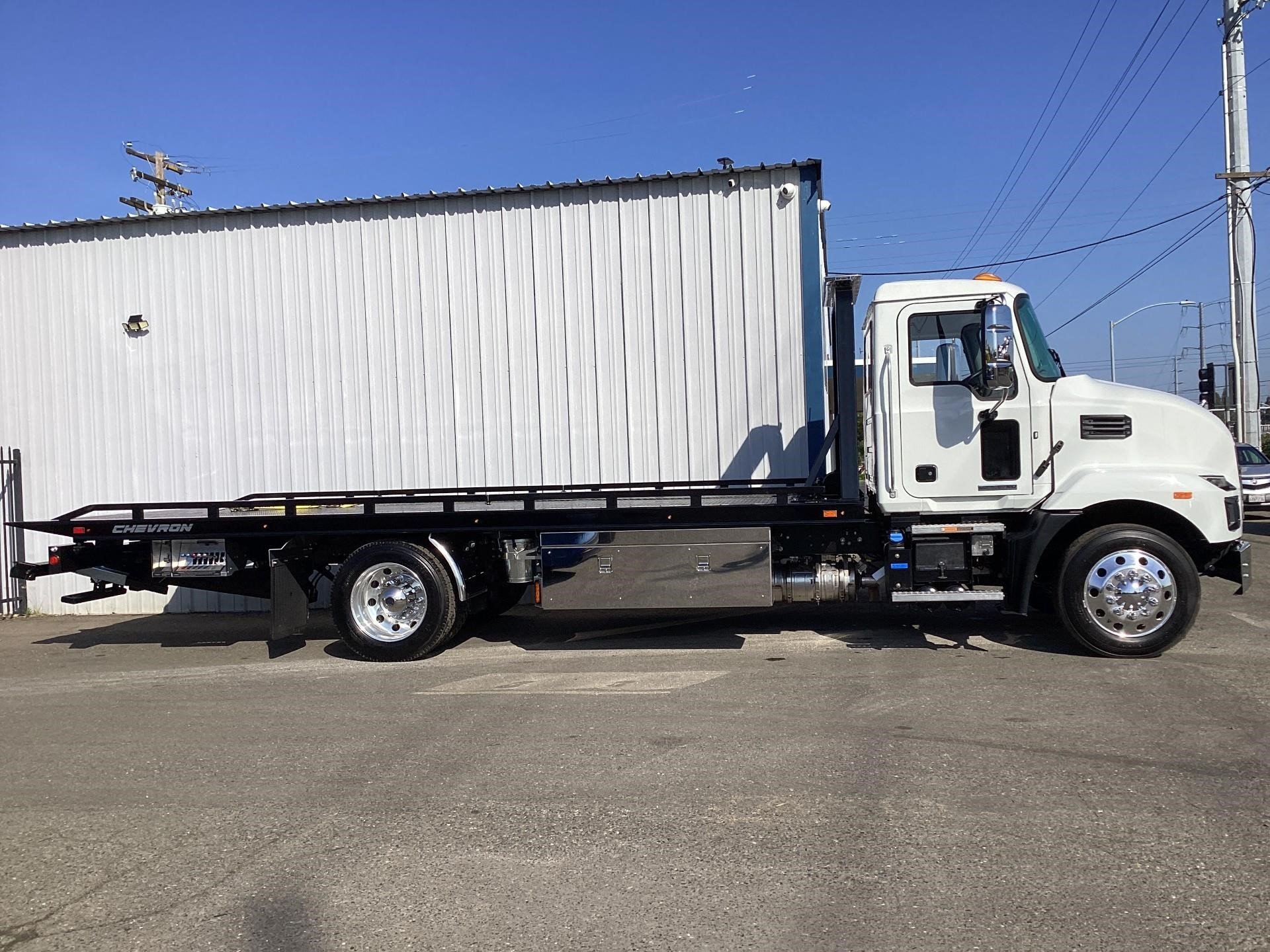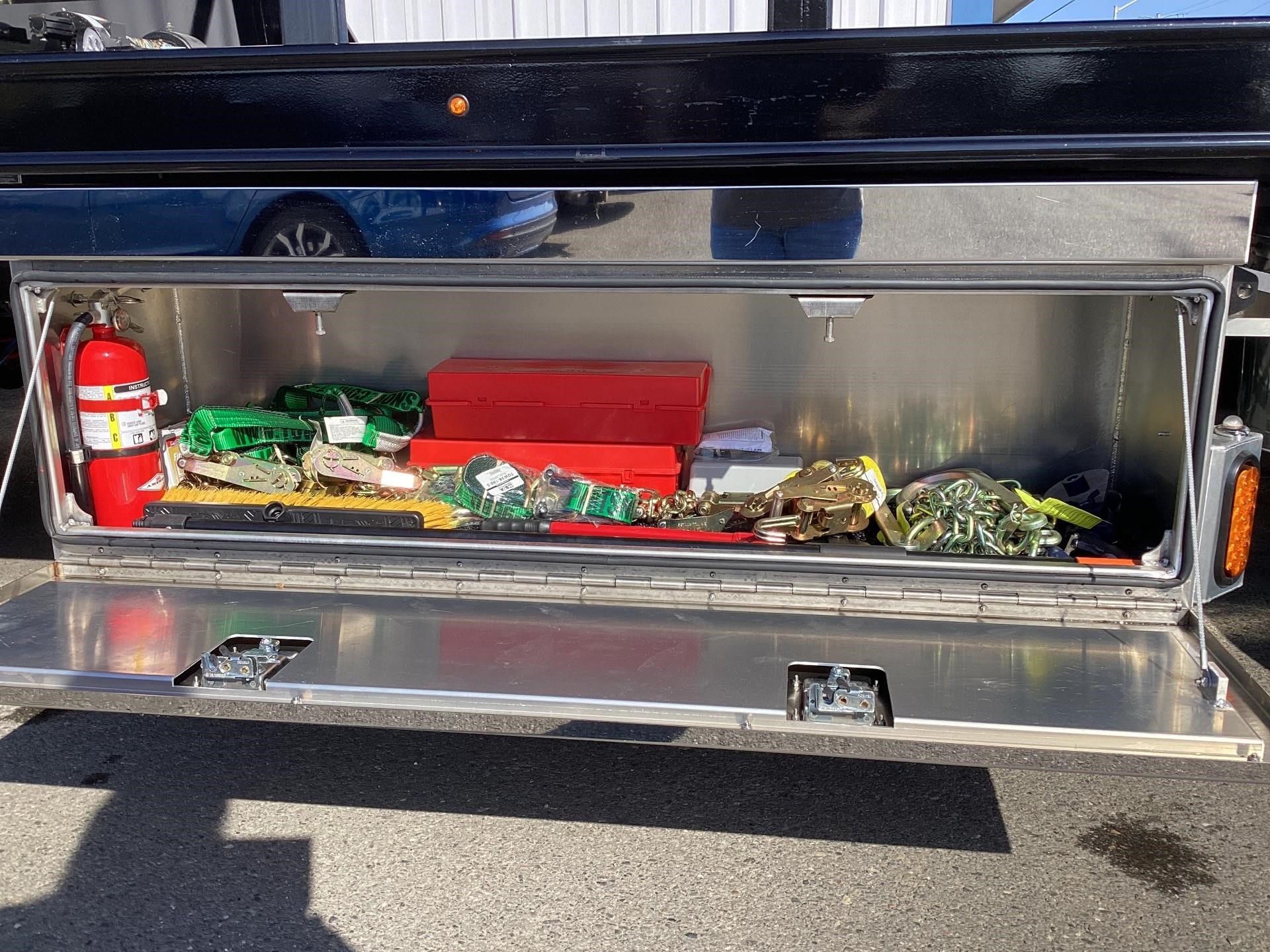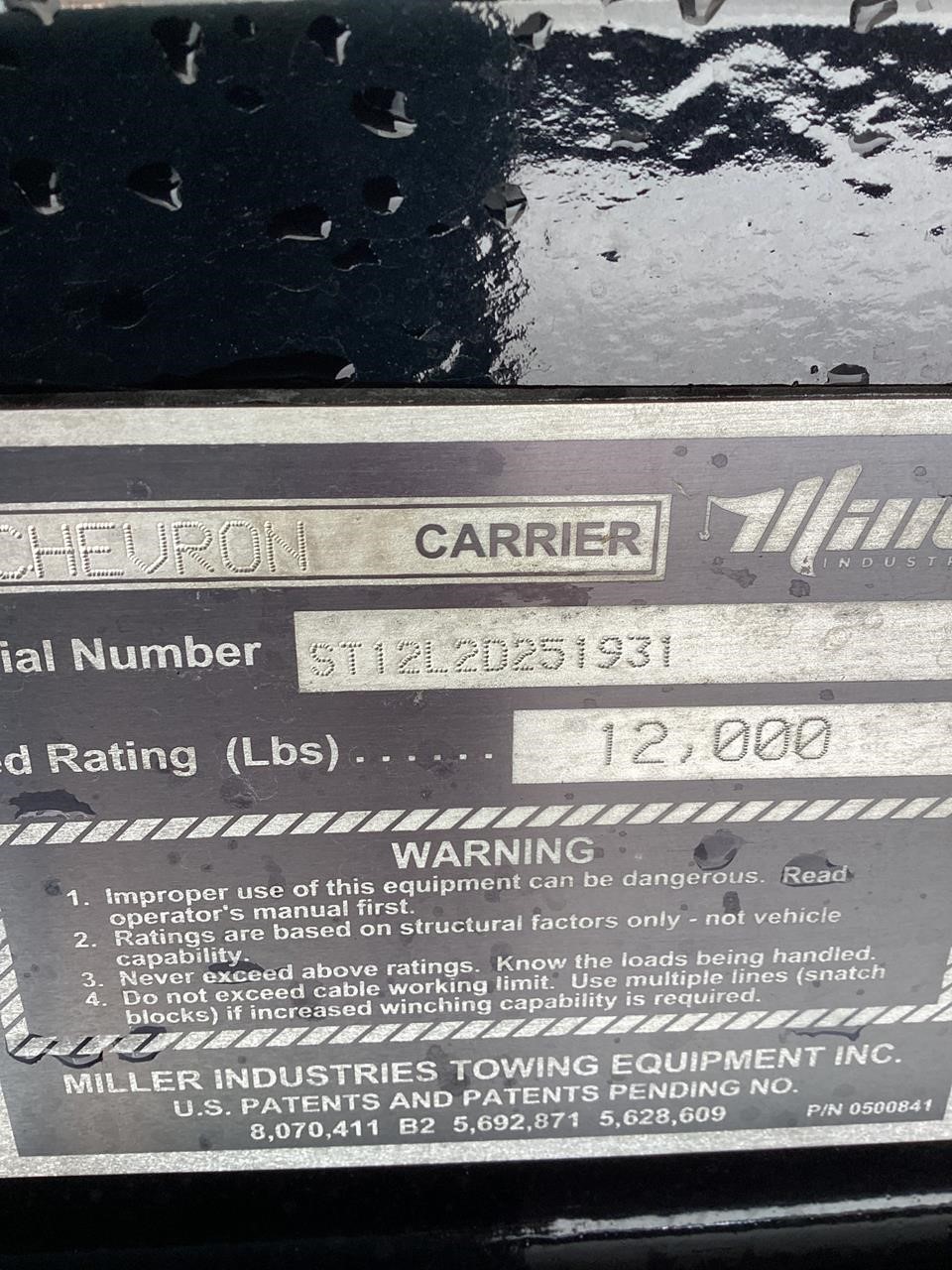 Chevron 21.5' Steel LCG (Low Center of Gravity) Carrier w/ Wheel Lift, 3/16 Deck Plate, 3x2 Corten Tube Crossmembers on 8 inch Centers, (4) Rear Chain Locks, (2) Front Chain Locks, (6) Floor Plate Chain Locks (3 per side), 8,000lb Worm Gear Winch, 3/8" x 50' Winch Cable, Illuminated Dual Controls, FMVSS 108 Lamp Group Shock Mounted Lighted, Direct Mount Pump, Cable Roller Guide w/ Tensioner, Winch Free Spool Extension, Back-Up Alarm, (2) Safety Chains, Mechanical Anti-tilt, Black Body Paint, 102" Wide Body, Inboard Tilt Cylinders, Floor Level Roll Formed w/ Punched Stake Pockets, 4,000lb Wheel Lift w/ Releasable L Arms, Fully Hydraulic Wheel Lift, (2) Safety Straps & Ratchets, (2) Rear Safety Chains, Body Lock w/ Nylatron Roller Bearings, & 12,000lb Deck Load Rating. Body Serial# ST12L2D251931