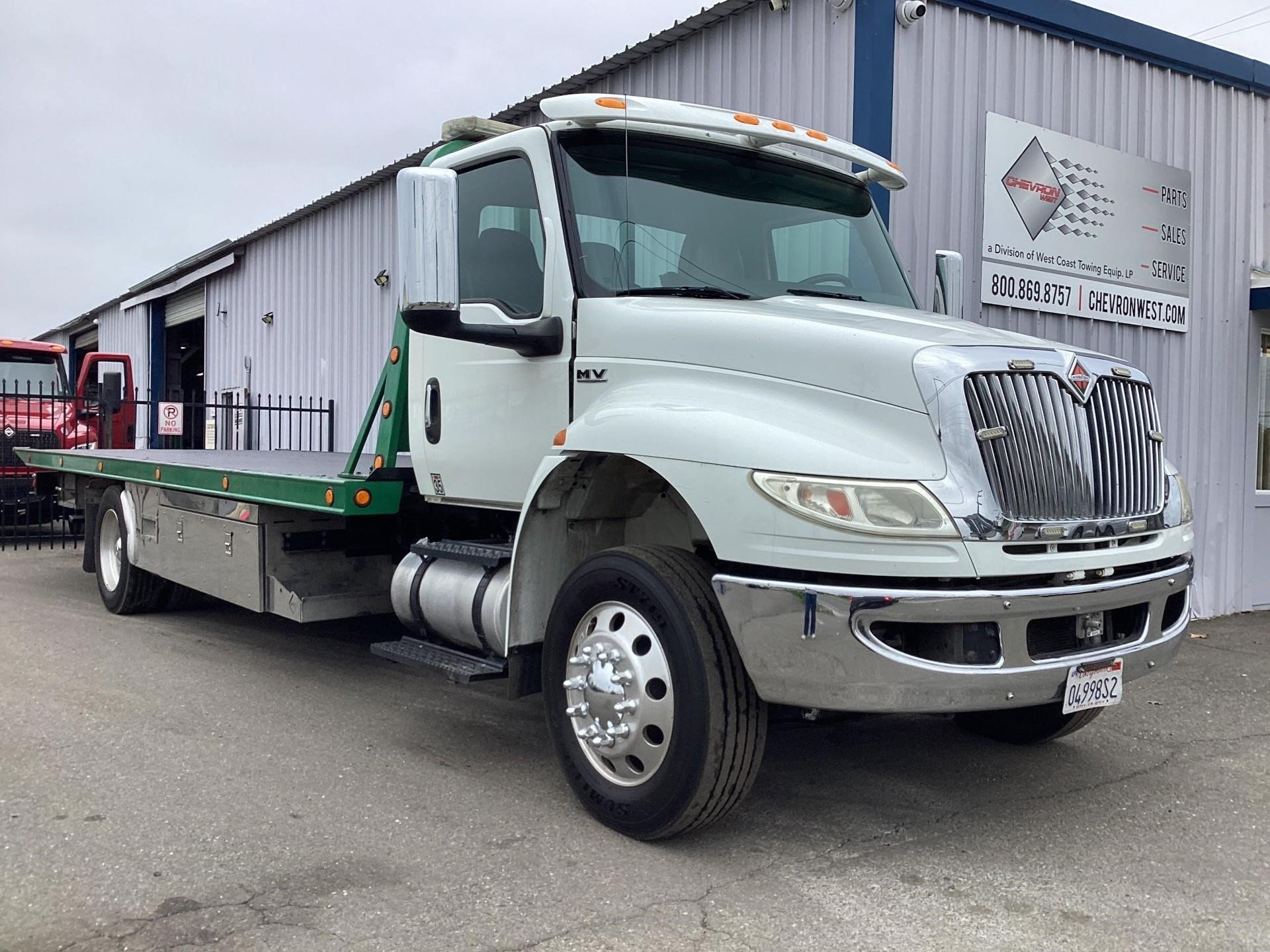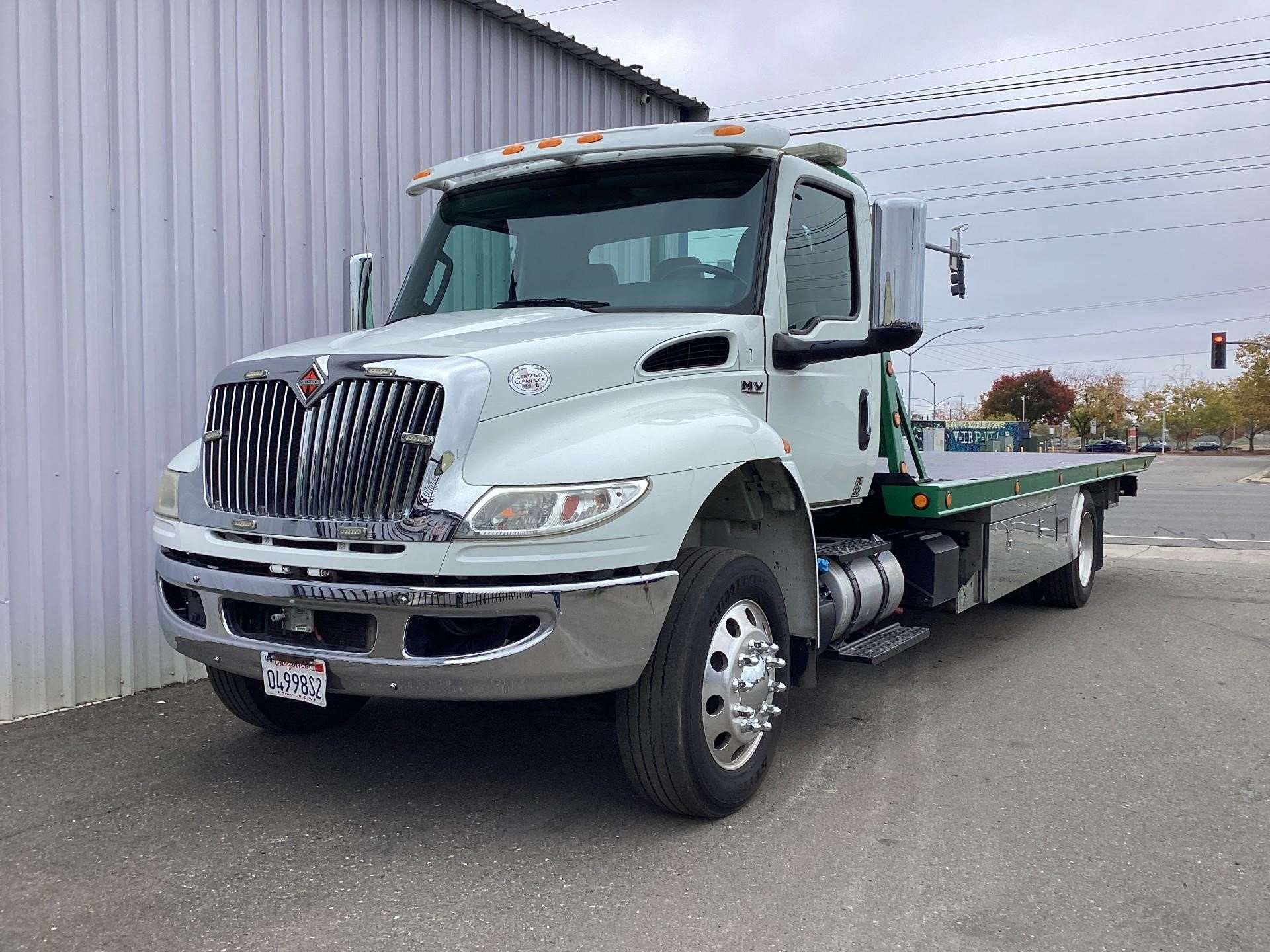 2019 Intl MV Day Cab w/ 6.7L Cummins, 325HP, 750lbs-ft, Allison RDS-3000 6 Speed Auto, Air Brakes, Exhaust Brake, Chrome Bumper and Grille, AM/FM/Bluetooth, Fog Lights, Dual Alum Fuel Tanks 0-40 gallons. , DEF Tank, Power Windows & Door Locks, Air Dryer with Heater. 10,000lb front suspension, 10,000lb Front axle. 23,000lb Rear axle, 23,000lb Air Ride suspension with Dump. 166"CA, RADIO AM/FM/WB/Clock/Bluetooth/USB Input/Auxiliary Input, MP3, Apple Device Play & Control. Tires. 3 Speakers. Electric Horn, Air Horn. 275/70R22.5 Tires w/ 22.5 Alum Wheels, block heater. Aux Switches, PTO Switch. Air-ride driver's seat, two-man passenger seat. Keyless entry, Visor,Air Ride cab mounts. 33,000lbs GVWR,