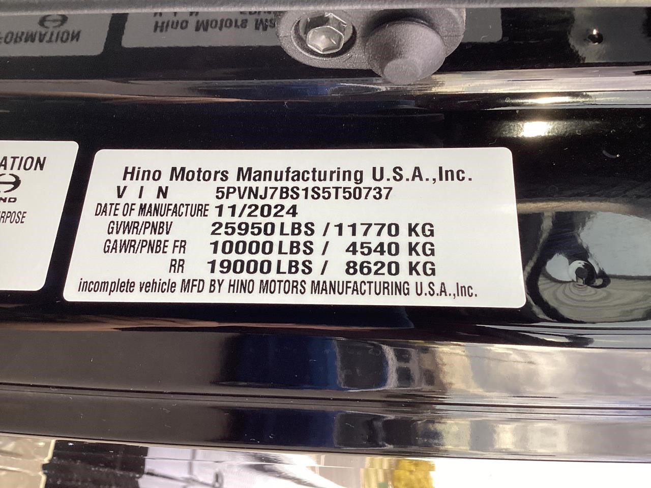 2025 Hino L-6 Extra cab - 260 HP Auto. Allison Automatic. Exhaust Brake, Air Brake package. 10,000lb front Axle 12K Front Suspension. 19,000lb Rear Axle, 5.13 Ratio. 52 52-gallon aluminum tank. 19,000lb Air suspension. Power Group, AM/FM Bluetooth, air-ride driver's seat. Single passenger seat. Rear Bench seat, cruise control, Idle up, chrome bumper -Aluminum wheels, Power Mirrors. Tilt wheel.. WB 22.5 25570R Tires. GVWR 25,950 149” CA ---- 5-year 300K Engine and After-treatment. 7-year unlimited -Allison Warranty-