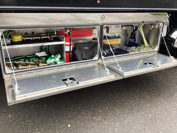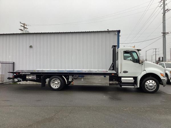 Chevron 21.5' Steel LCG (Low Center of Gravity) Carrier w/ Wheel Lift, 3/16 Deck Plate, 3x2 Corten Tube Crossmembers on 8 inch Centers, (4) Rear Chain Locks, (2) Front Chain Locks, (6) Floor Plate Chain Locks (3 per side), 8,000lb Worm Gear Winch, 3/8" x 50' Winch Cable, Illuminated Dual Controls, FMVSS 108 Lamp Group Shock Mounted Lighted, Direct Mount Pump, Cable Roller Guide w/ Tensioner, Winch Free Spool Extension, Back-Up Alarm, (2) Safety Chains, Mechanical Anti-tilt, Black Body Paint, 102" Wide Body, Inboard Tilt Cylinders, Floor Level Roll Formed w/ Punched Stake Pockets, 4,000lb Wheel Lift w/ Releasable L Arms, Fully Hydraulic Wheel Lift, (2) Safety Straps & Ratchets, (2) Rear Safety Chains, Body Lock w/ Nylatron Roller Bearings, & 12,000lb Deck Load Rating. Body Serial # ST12L2F253082