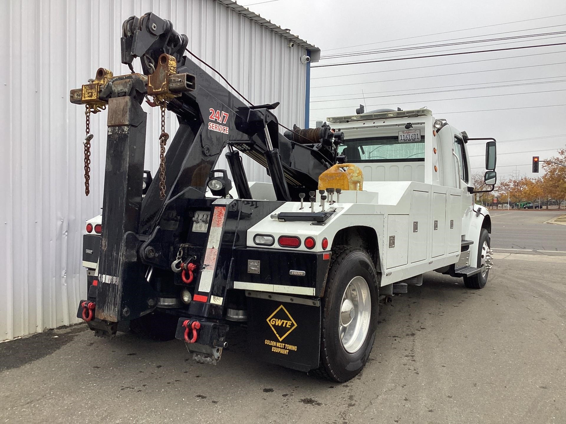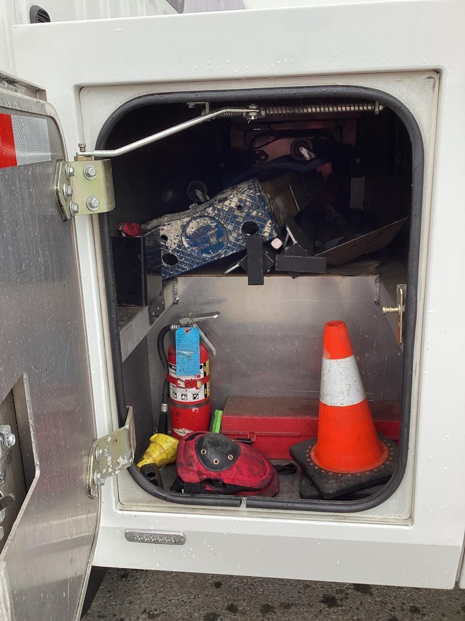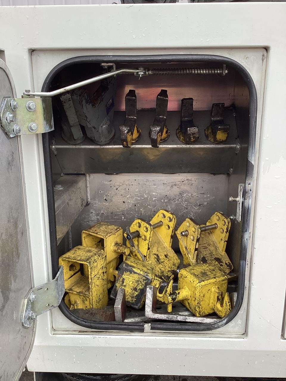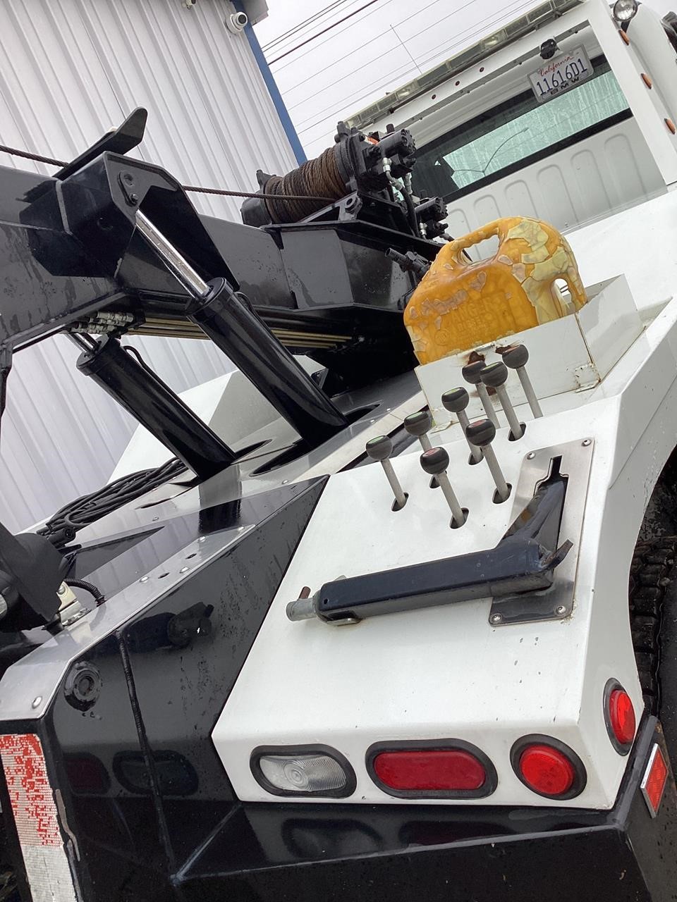 Chevron 1016 Model 16 ton Boom Dual 15K planetary Winches 1/2" x 150' cable per drum Cable tensioners (Installed) 12,500 Under lift Rating Retracted 87" Reach under lift to Centerline of Forks Aluminum Modular body sides Through box (Tunnel) aluminum Dual control Stations Tool compartment Closures on all Doors One pair of 3" Forks One pair of 4" Forks Spring fork adapters Low Profile offset fork holders Under lift Crossbar Extensions Elevated Fork holders.Releasable "L" Arms - Recessed in body Wheelift Strap and Ratchets Safety Chain pockets Safety Chains FMVS -108 lighting Rear "D" Rings Lubrication Fittings on all Pivot points Backup alarm 96" Body Width Boom. Body Serial # 10114653