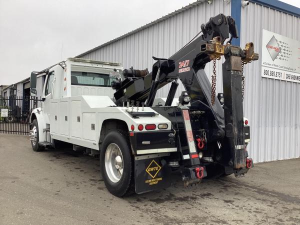 Chevron 1016 Model 16 ton Boom Dual 15K planetary Winches 1/2" x 150' cable per drum Cable tensioners (Installed) 12,500 Under lift Rating Retracted 87" Reach under lift to Centerline of Forks Aluminum Modular body sides Through box (Tunnel) aluminum Dual control Stations Tool compartment Closures on all Doors One pair of 3" Forks One pair of 4" Forks Spring fork adapters Low Profile offset fork holders Under lift Crossbar Extensions Elevated Fork holders.Releasable "L" Arms - Recessed in body Wheelift Strap and Ratchets Safety Chain pockets Safety Chains FMVS -108 lighting Rear "D" Rings Lubrication Fittings on all Pivot points Backup alarm 96" Body Width Boom. Body Serial # 10114653