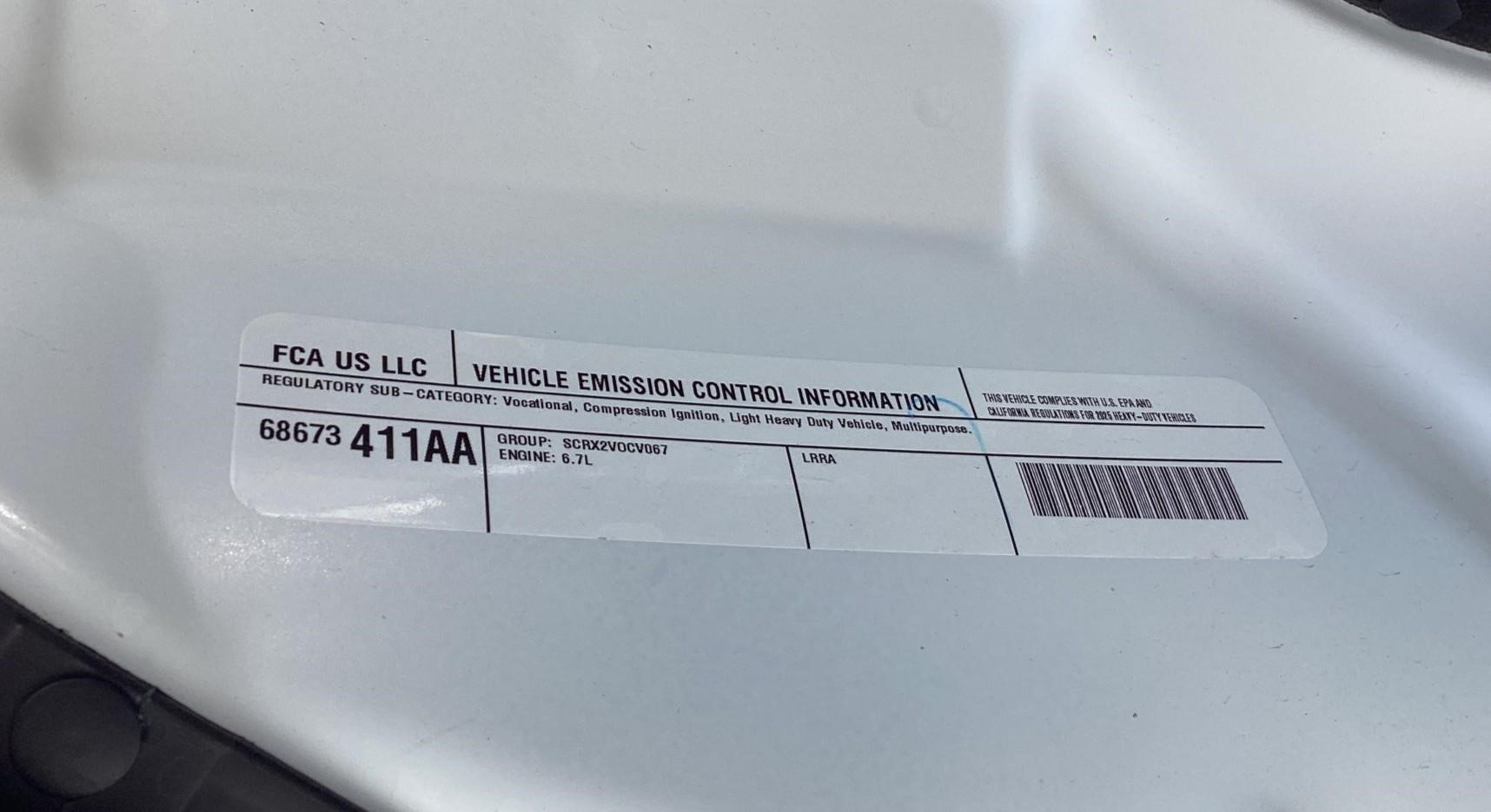 Power Take-Off Right/Left; Transfer Case Skid Plate Shield 136 amp Alternator, , Exhaust brake. Engine Block Heater, 120" CA, Non-Independent Front Suspension, Rear Leaf Suspension, 4 Wheel Anti-Lock Braking System, Daytime Running Lights, Dual Air Bags, A/C, Radio: Uconnect 5 Nav w/12.0" Display 6 speakers, GPS Navigation Cruise Control, Power Windows, Power Door Locks, 40-20-40 Split Bench Seat, Vinyl Black Material, Upfitter Switches (5). Fog lamps. Keyless entry. Body Color fenders. Manual DPF Regen., Power 2-Way Driver Lumbar Adjust. 115V Auxiliary Power outlet.Fog lamps 19,500 GVWR, black Cab Steps, 22 Gal Fuel Tank, 225/70R19.5 Tires w/ 19.5 Alum Wheels