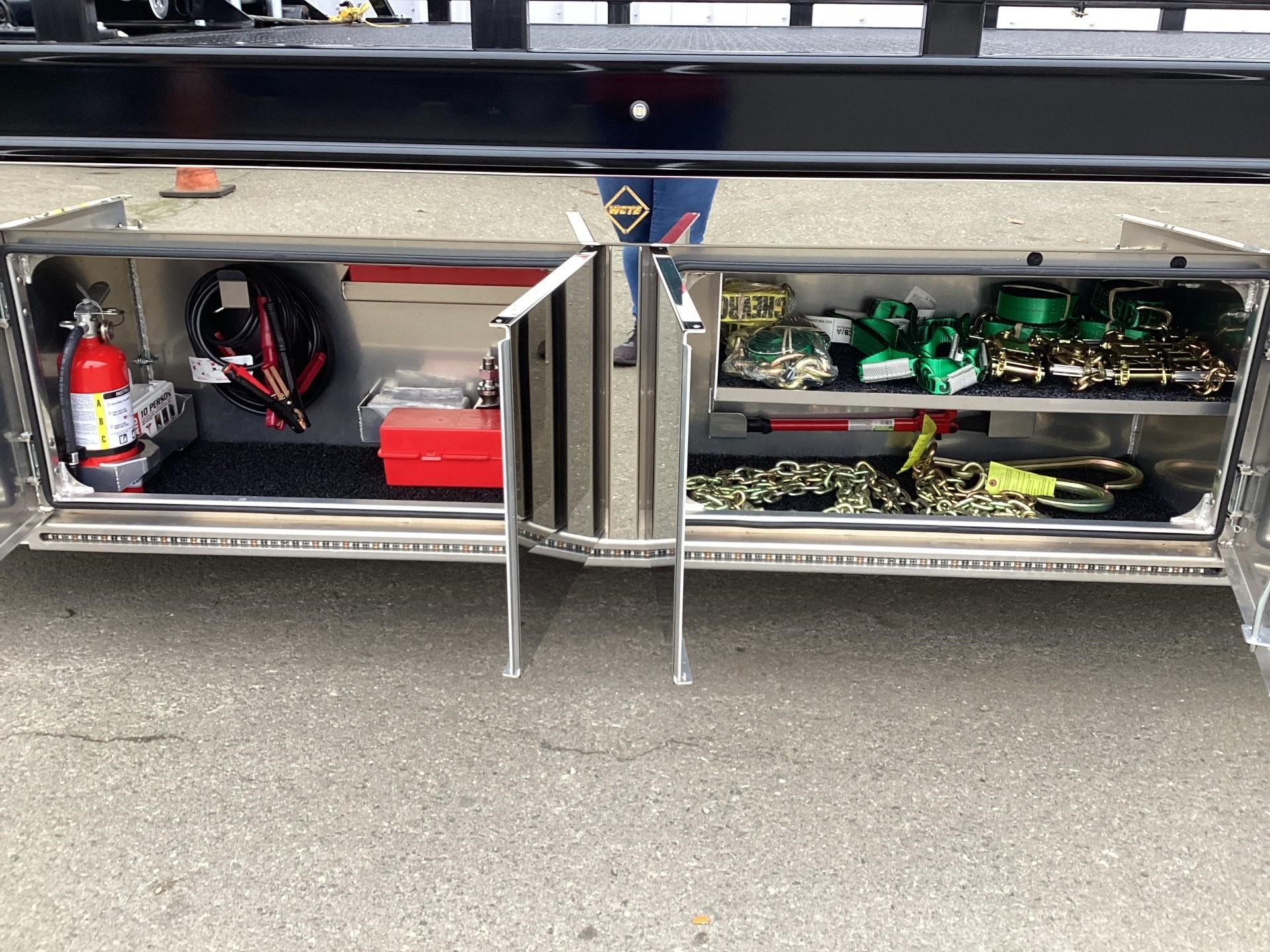 Chevron LCG 12 21.5' Steel LCG (Low Center of Gravity) Carrier w/ Wheel Lift, 3/16 Deck Plate, 2x2 Corten Tube Crossmembers on 8 inch Centers, (4) Rear Chain Locks, (2) Front Chain Locks, (6) Floor Plate Chain Locks (3 per side), 8K Ramsey winch, 3/8" x 50' Winch Cable, Illuminated Dual Controls, FMVSS 108 Lamp Group Shock Mounted Lighted, Direct Mount Pump, Cable Roller Guide w/ Tensioner, Winch Free Spool Extension, Back-Up Alarm, (2) Safety Chains, Mechanical Anti-tilt, Black Body Paint, 102" Wide Body, Inboard Tilt Cylinders, Floor Level Roll Formed w/ Punched Stake Pockets, 4,000lb Wheel Lift w/ Releasable L Arms, Fully Hydraulic Wheel Lift, (2) Safety Straps & Ratchets, (2) Rear Safety Chains, Body Lock w/ Nylatron roller Bearings, & 12,000lb Deck Load Rating, Body Serial #
