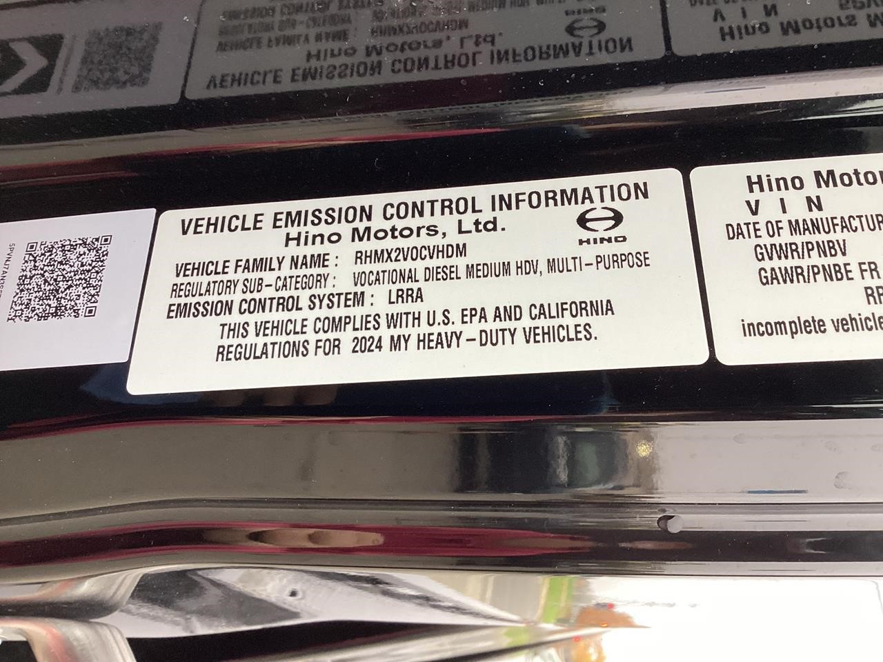 Hino L-6 California Compliant - 260 HP Auto. Allison Automatic. Exhaust Brake, Air Brake package. 10,000lb front Axle 12K Front Suspension. 19,000lb Rear Axle, 4.88 Ratio. 52 52-gallon aluminum tank. 19,000lb Air suspension. Power Group, AM/FM Bluetooth, air-ride driver's seat. Two-man passenger seat. cruise control, Idle up, chrome bumper -Aluminum wheels, Power Mirrors. Tilt wheel.. WB 22.5 25570R Tires. GVWR 25,950 149” CA ---- 5-year 300K Engine and After-treatment. 7-year unlimited -Allison Warranty
