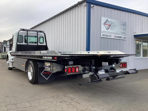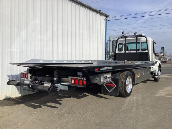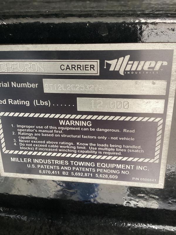 ®⩥Chevron 21.5' Steel LCG (Low Center of Gravity) Carrier w/ Wheel Lift, 3/16 Deck Plate, 3x2 Corten Tube Crossmembers on 8 inch Centers, (4) Rear Chain Locks, (2) Front Chain Locks, (6) Floor Plate Chain Locks (3 per side), 8,000lb Worm Gear Winch, 3/8" x 50' Winch Cable, Illuminated Dual Controls, FMVSS 108 Lamp Group Shock Mounted Lighted, Direct Mount Pump, Cable Roller Guide w/ Tensioner, Winch Free Spool Extension, Back-Up Alarm, (2) Safety Chains, Mechanical Anti-tilt, Black Body Paint, 102" Wide Body, Inboard Tilt Cylinders, Floor Level Roll Formed w/ Punched Stake Pockets, 4,000lb Wheel Lift w/ Releasable L Arms, Fully Hydraulic Wheel Lift, (2) Safety Straps & Ratchets, (2) Rear Safety Chains, Body Lock w/ Nylatron Roller Bearings, & 12,000lb Deck Load Rating. Body Serial # ST12L2G253276