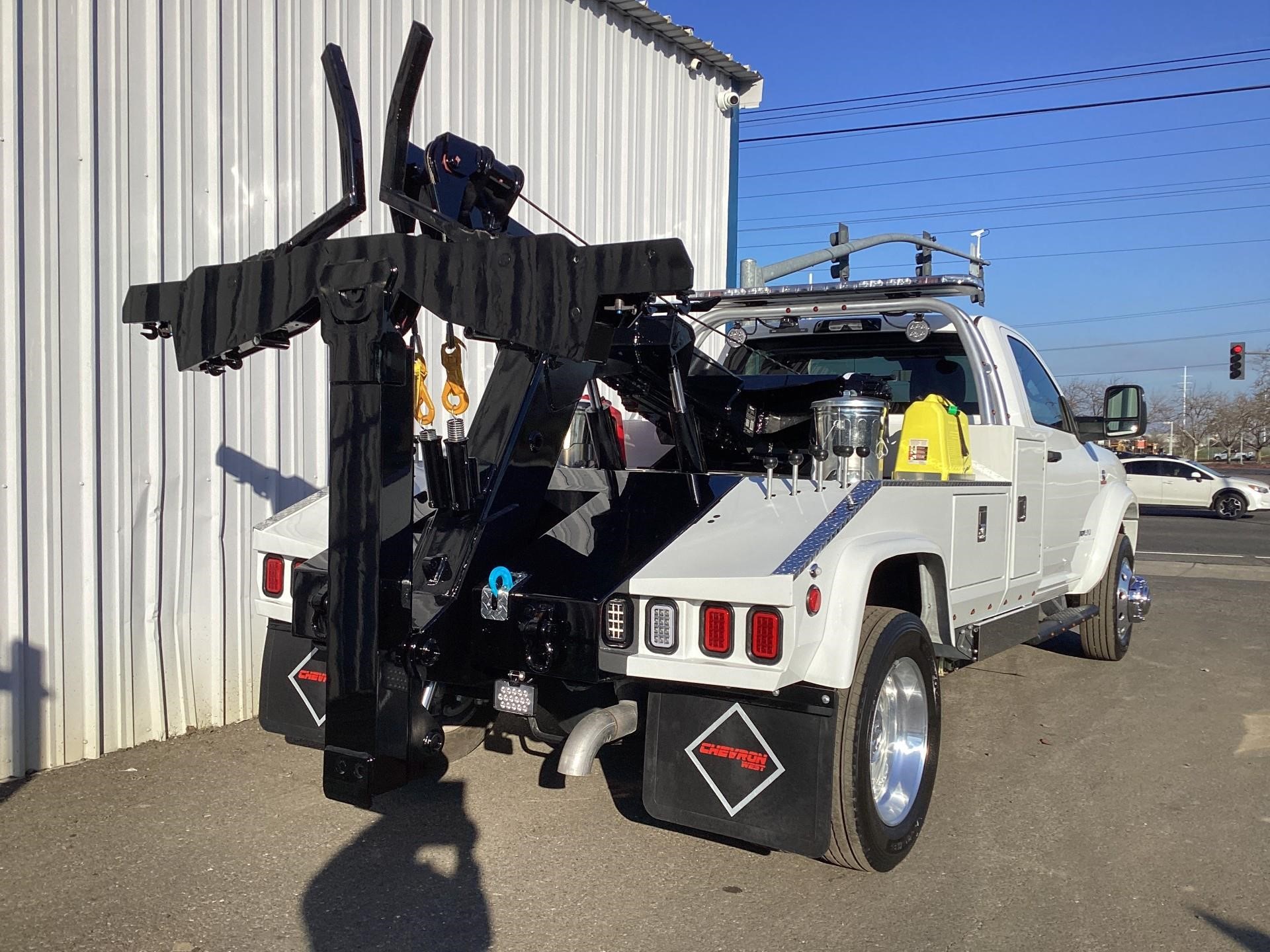 Chevron 408 TA Renegade G-2 Dual Line Extendable Boom. Integrated Boom, Wheel Lift, (2) Safety Straps, (2) Side Entry Tool Boxes, Rear Snatch Block Anchors, FMVSS 108 Lamp Group, Safety Chain Pockets, (2) Safety Chains, Back-Up Alarm, Auto Grip II Wheel Lift System, Dual 9,000lb Planetary Winches w/ 3/8" x 100' Cable, Cable Tensioner, & Dual Control Stations. LED lighting package. SERIAL # 4081K254633
