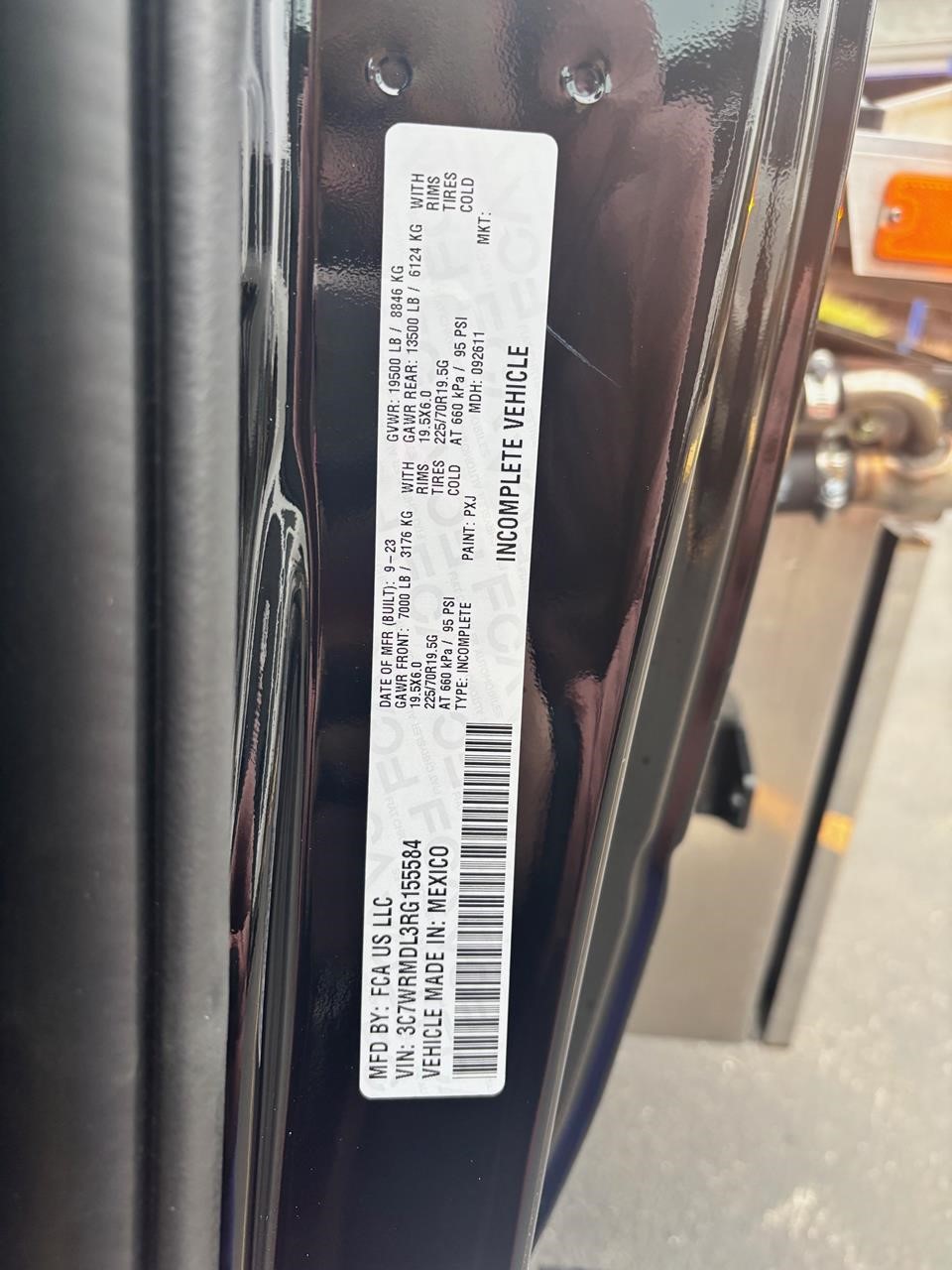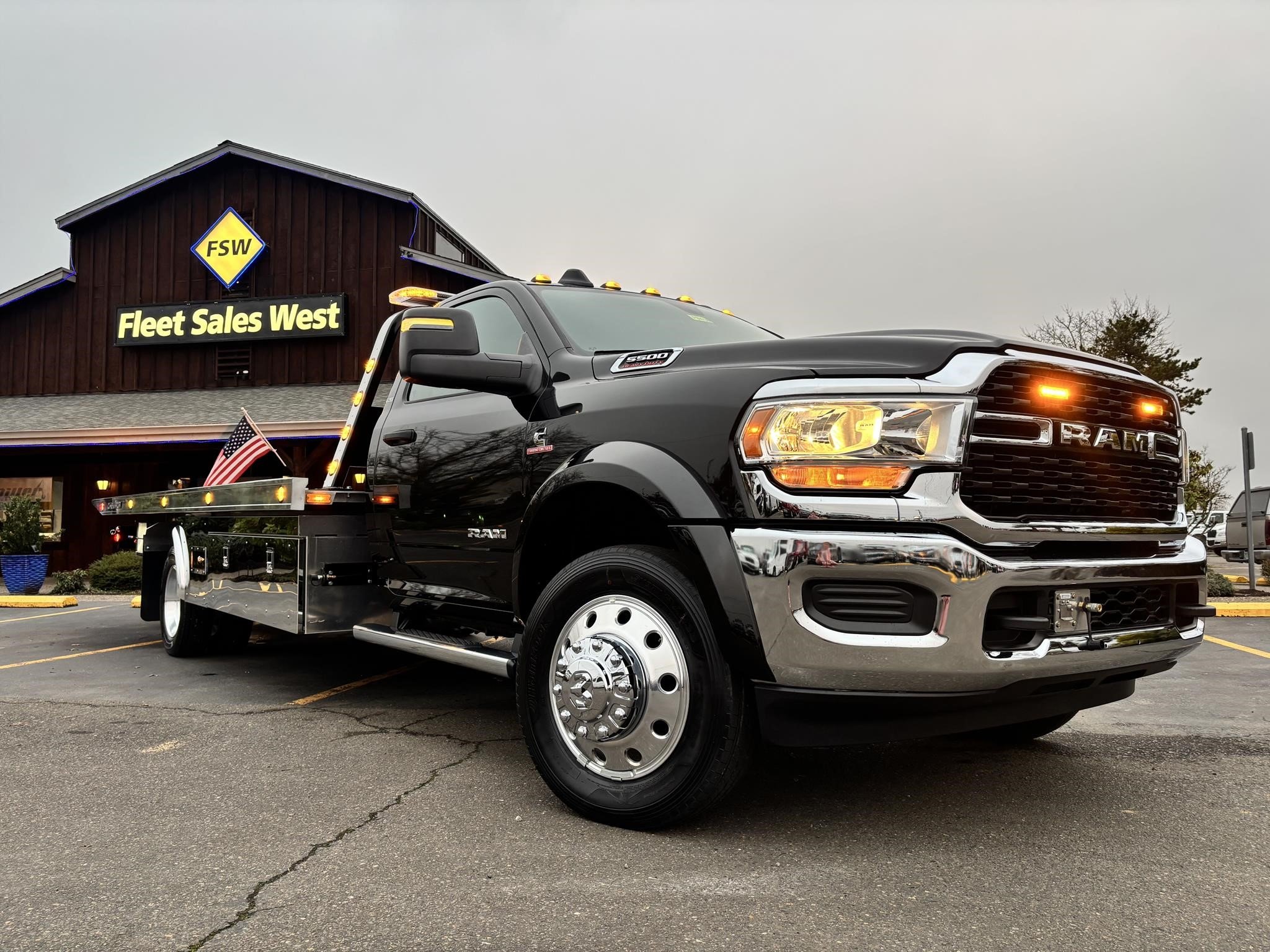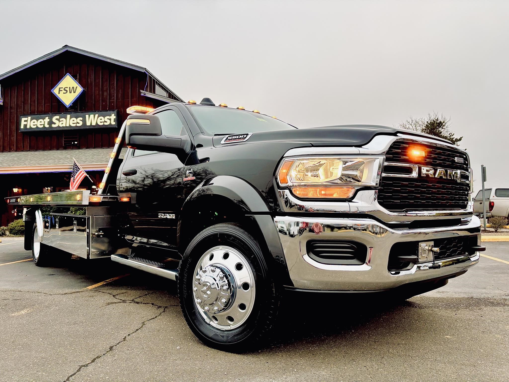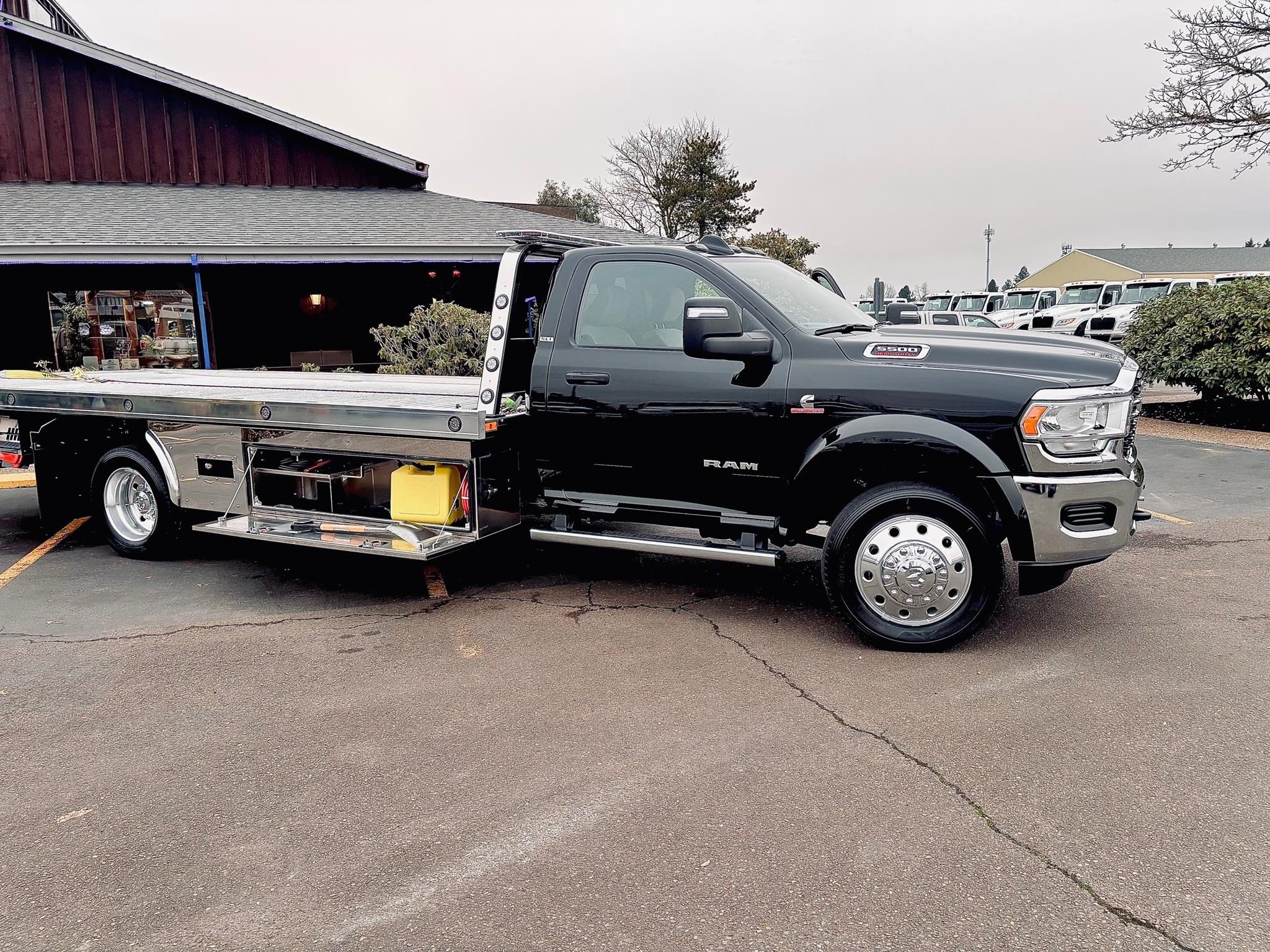 RAM 5500 SLT Reg Cab w/ Cummins 6.7L I-6 OHV Direct Diesel Injection, 24 Valve Intercooled Turbo, 325HP @ 3,000 rpm, 750 lb-ft @ 1,600 rpm, 136 amp Alternator, 6 Speed Automatic Aisin AS68RC, Exhaust brake. Engine Block Heater, 120" CA, 4 Wheel Disc Brakes w/ Front and rear Vented Discs, Non-Independent Front Suspension, Rear Leaf Suspension, 4 Wheel Anti-Lock Braking System, Daytime Running Lights, Dual Air Bags, A/C, 5" Touch Screen AM/FM/CD Radio, Cruise Control, Power Windows, Power Door Locks, 40-20-40 Split Bench Seat, Vinyl Black Material, Upfitter Switches (5). 19,500 GVWR, Chrome Cab Steps, 22 Gal Fuel Tank, 225/70R19.5 Tires w/ 19.5 Alum Wheels.