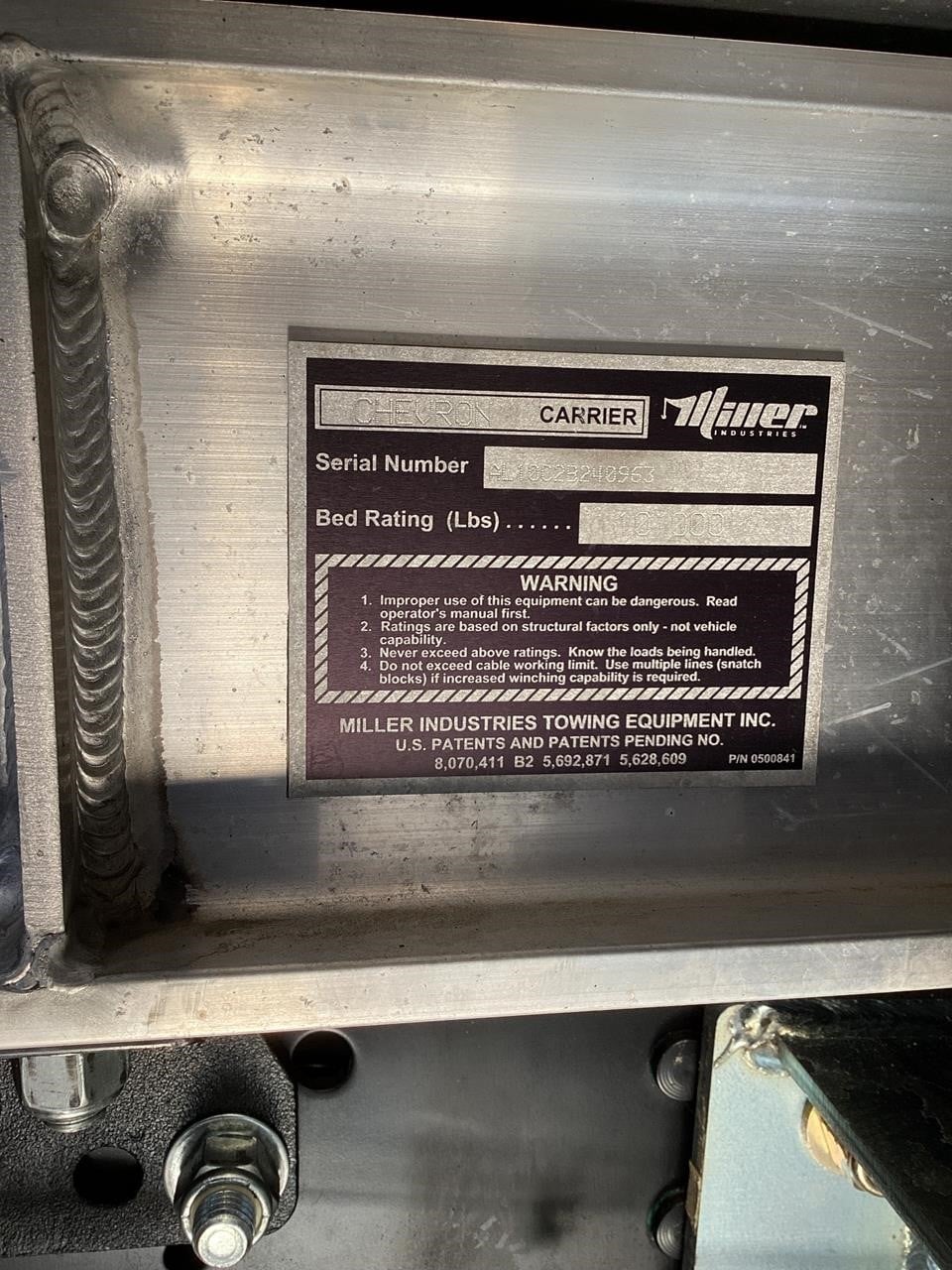Chevron 19.6" Aluminum Floor Rails (Aluminum) 4 Key Slot Package (Aluminum) 210" Full-Length Subframe Full-Length Slide Pads Right & Left Chain Trays Bed Anti-Tilt Lockout. Safety Chains (2-front, 2-rear) Positive Lock-down Painted with Black Acrylic Enamel (Subframe). Two Lift Cylinders Left & Right Side Illuminated Controls One Extension Cylinder, Federal Standard #108 LED Lighting Winch Clutch Release 8,000 lb. Hydraulic Winch w/50' Cable Cable Tensioner Full Function Wheel Lift System Cable Roller Guide Slide-In L-Arms with Anti-Theft Storage Tow Light Socket. Pre-Wired Electrical Junction Box Mud Flaps Back-Up Lights & Alarm Hydraulic Pump. Adjustable Rear Stabilizer. LED Light package included. Body# : AL10C2B240963
