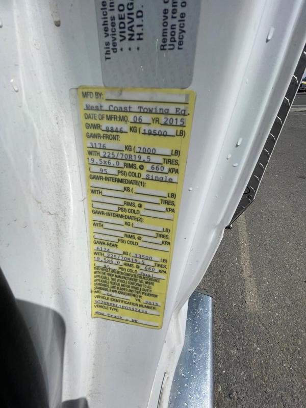 Chevron 408TA G2 "Renegade" Extendable boom. 8-ton. Integrated Boom, Wheel Lift, (2) Safety Straps, (2) Side Entry Tool Boxes, Rear Snatch Block Anchors, FMVSS 108 Lamp Group, Safety Chain Pockets, (2) Safety Chains, Back Up Alarm, Auto Grip II Wheel Lift System, Single 9,000lb Planetary "Warn" Winch w/ 3/8" x 100' Cable, Cable Tensioner, & Dual Control Stations. FMVS 108 Lamp Group. Two two-light plug. Mudflap brackets. Control station labels. Chain pockets. Straps for wheel lift. Body serial # 0408T16216